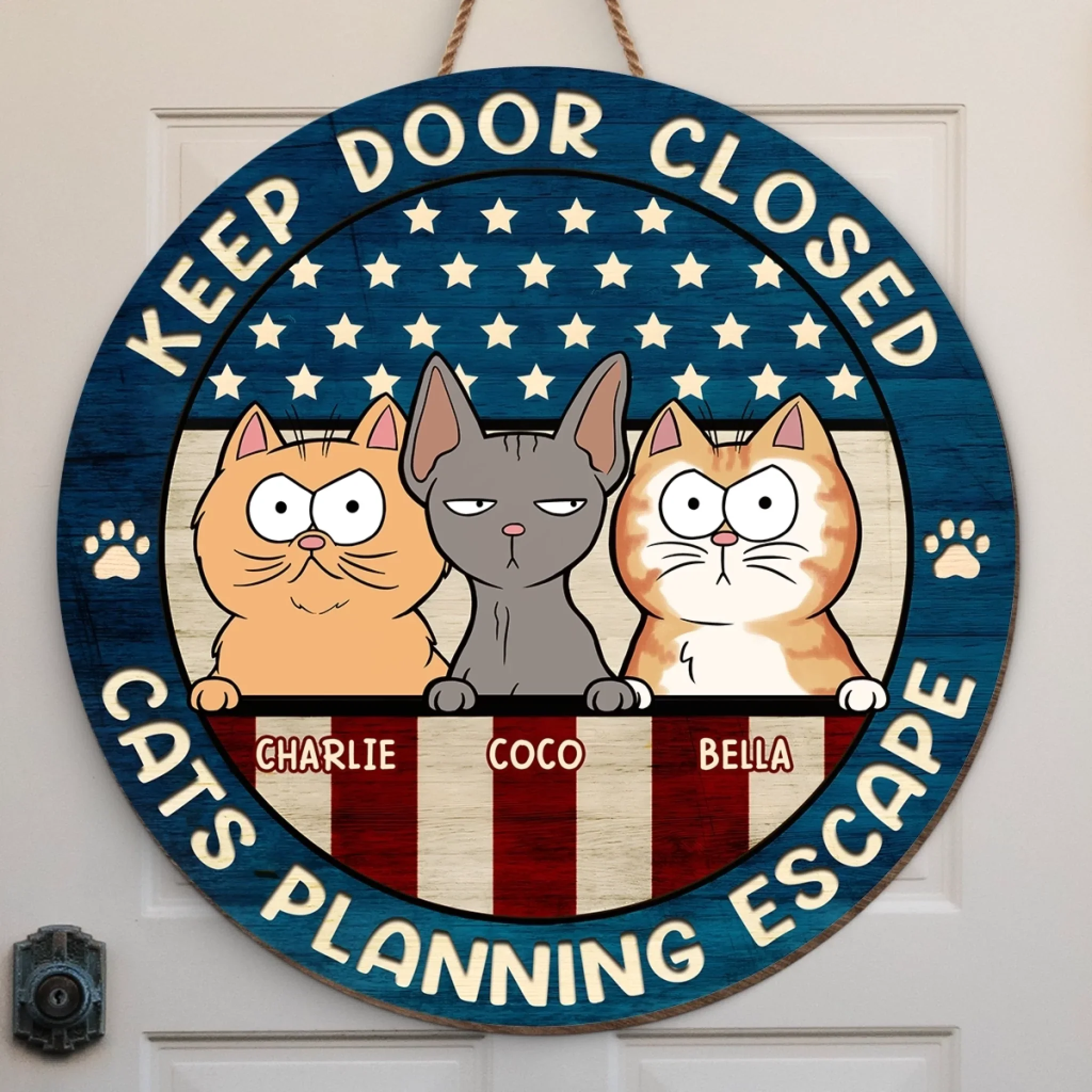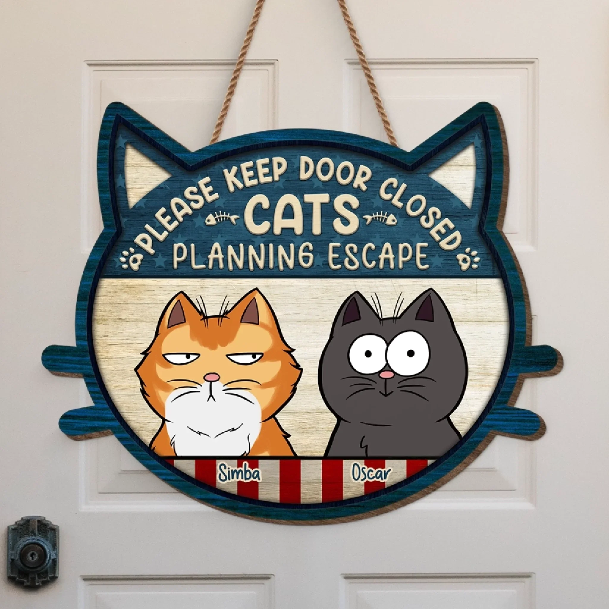 Custom Home Decor Wood Sign - Personalized Birthday Gifts For Cat Lovers, Cat Mom And Dad - Keep Door Closed, Cats Inside