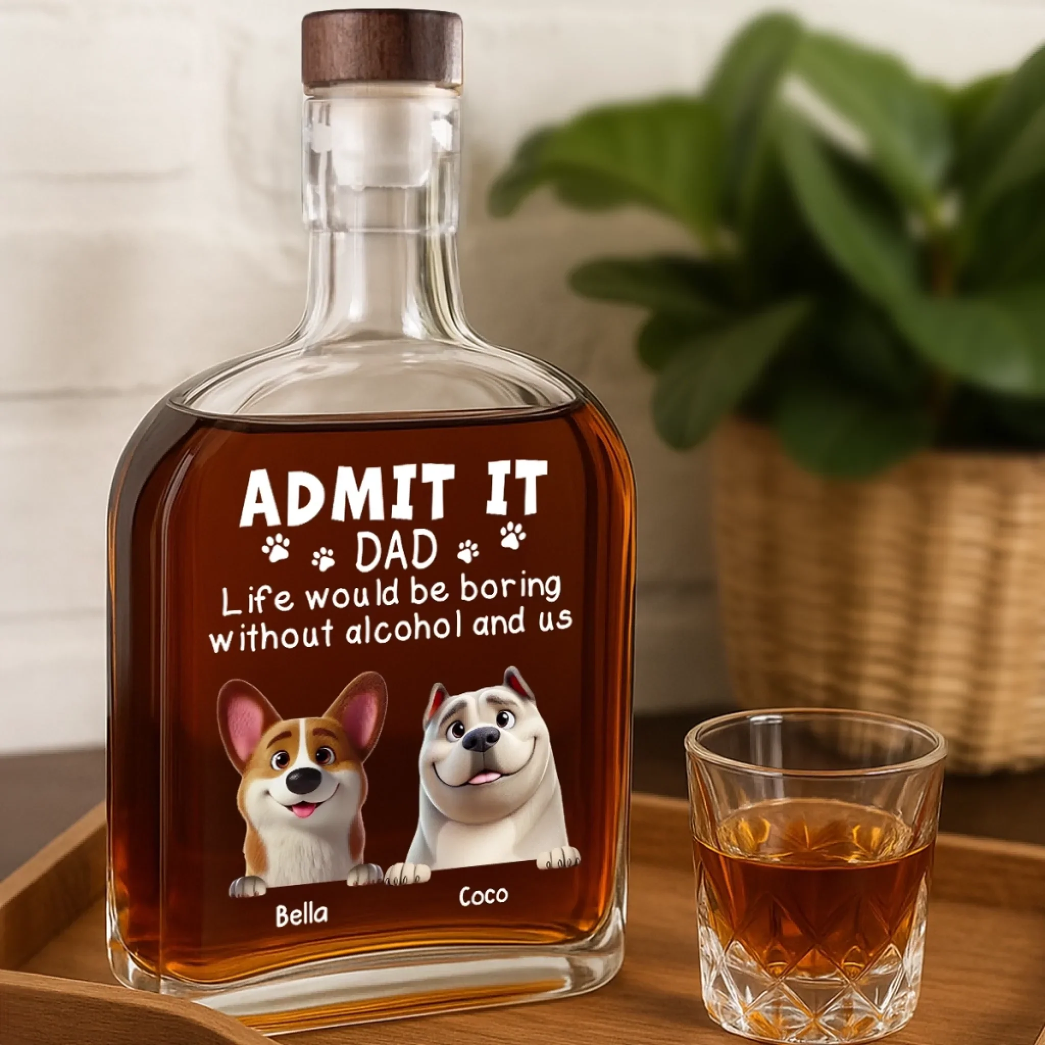 Custom Whiskey Bottle - Personalized Birthday Gifts For Dog Lovers, Dog Dad And Mom - More Wag, Less Drag, More Dad