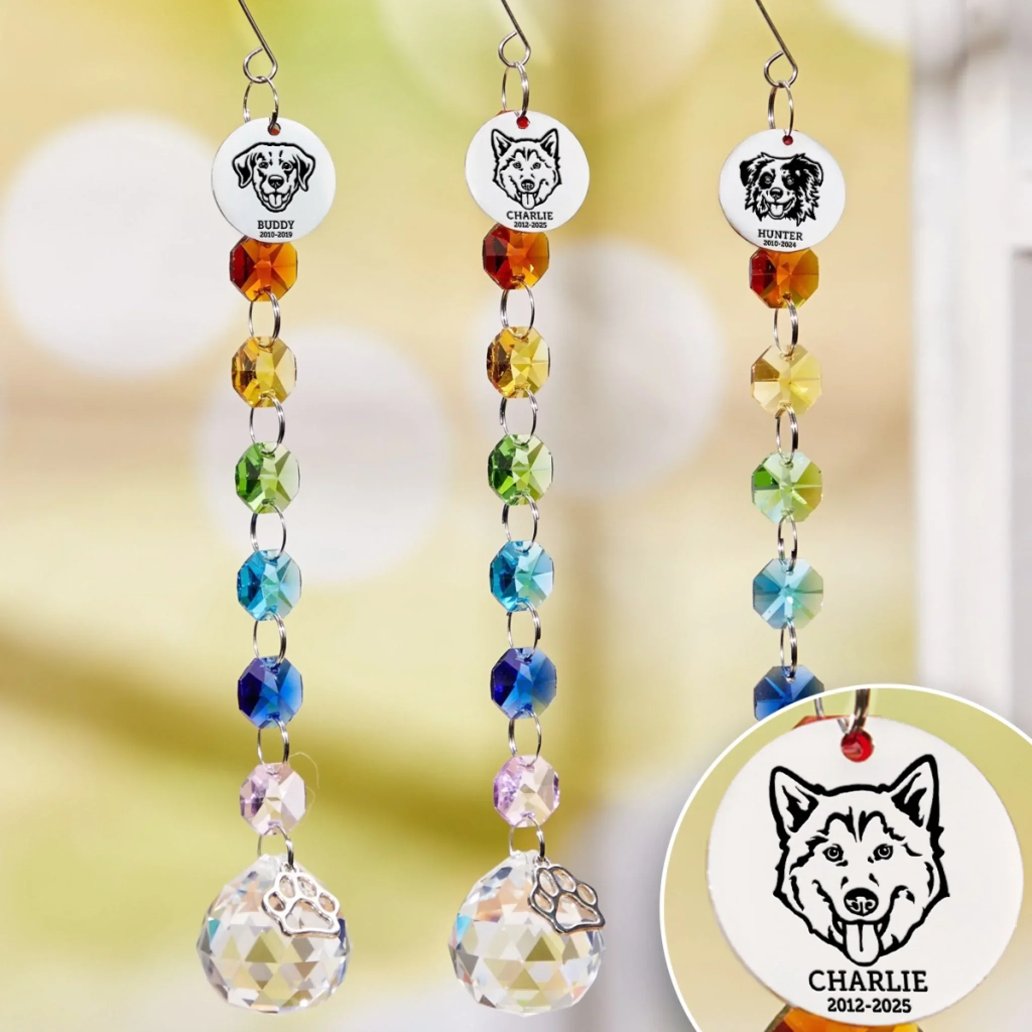 Custom Crystal Suncatcher With Charm - Personalized Pet Memorial Gifts For Dogs - Forever Loved, Never Forgotten