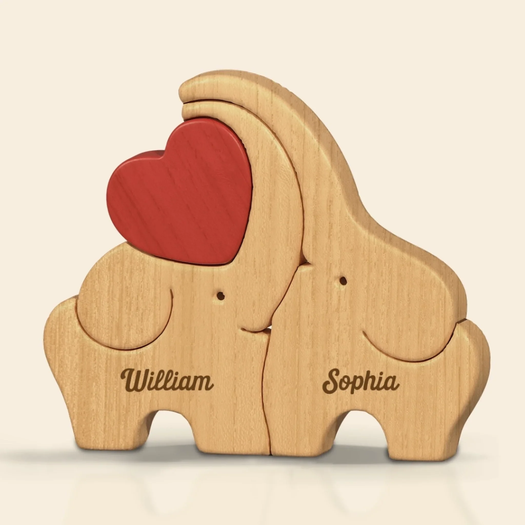Custom Elephant Shaped Wooden Art Puzzle - Personalized Anniversary Wedding Gifts For Husband And Wife, Him And Her - Love The Way We Are Together