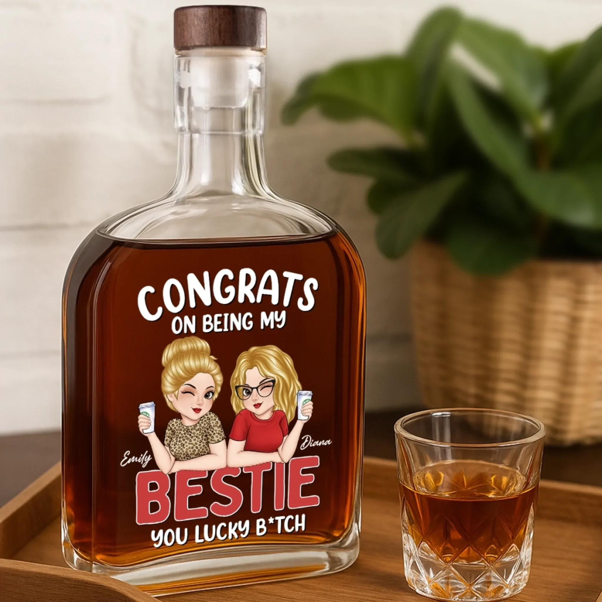 Custom Whiskey Bottle - Personalized Best Friend Birthday Gifts For Women - Unbreakable Friendship Vibes