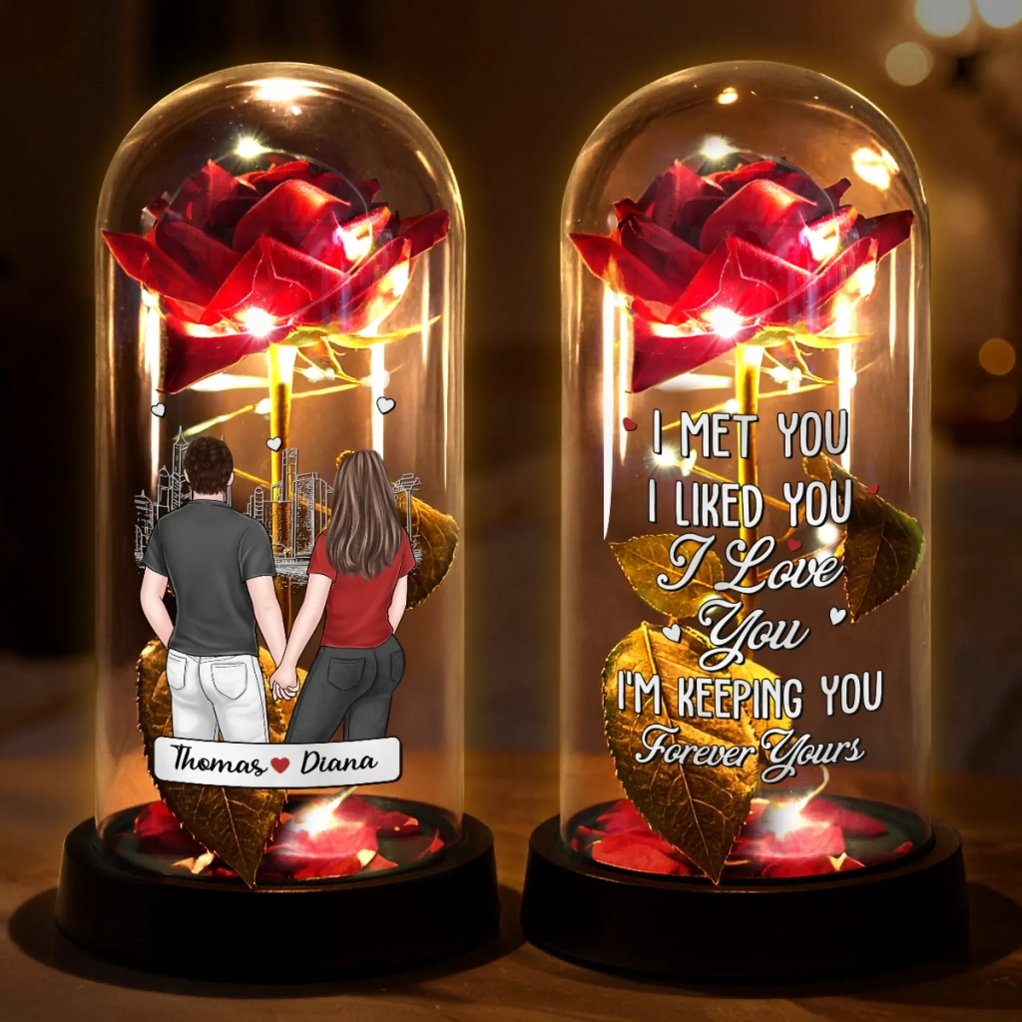 Custom Light Up Eternal Rose In Glass Dome - Personalized Anniversary Wedding Gifts For Husband And Wife, Him And Her - Forever Starts With You