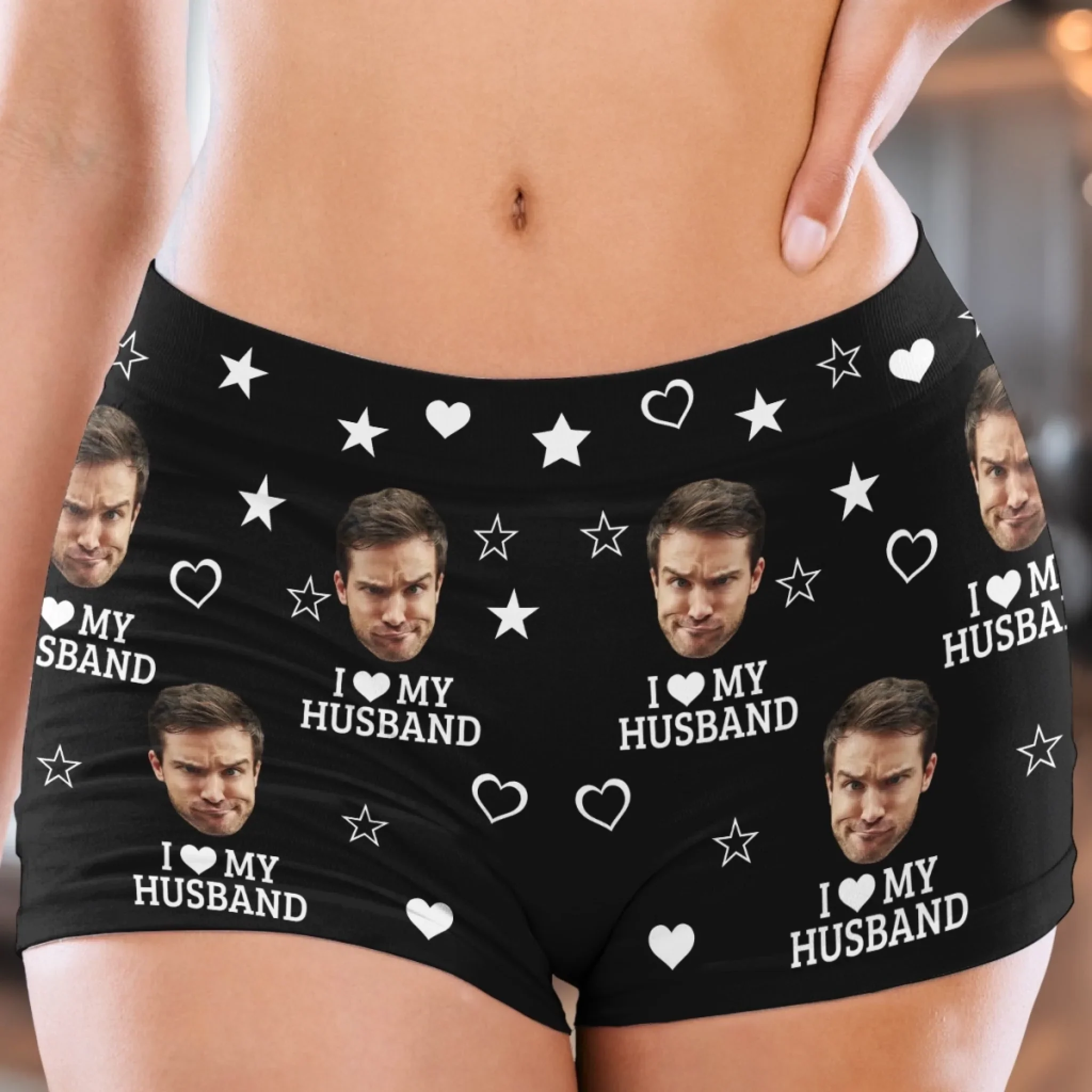 Custom Photo Short Leggings - Personalized Personalized Gifts For Husband And Wife, Him And Her - I Love My Husband