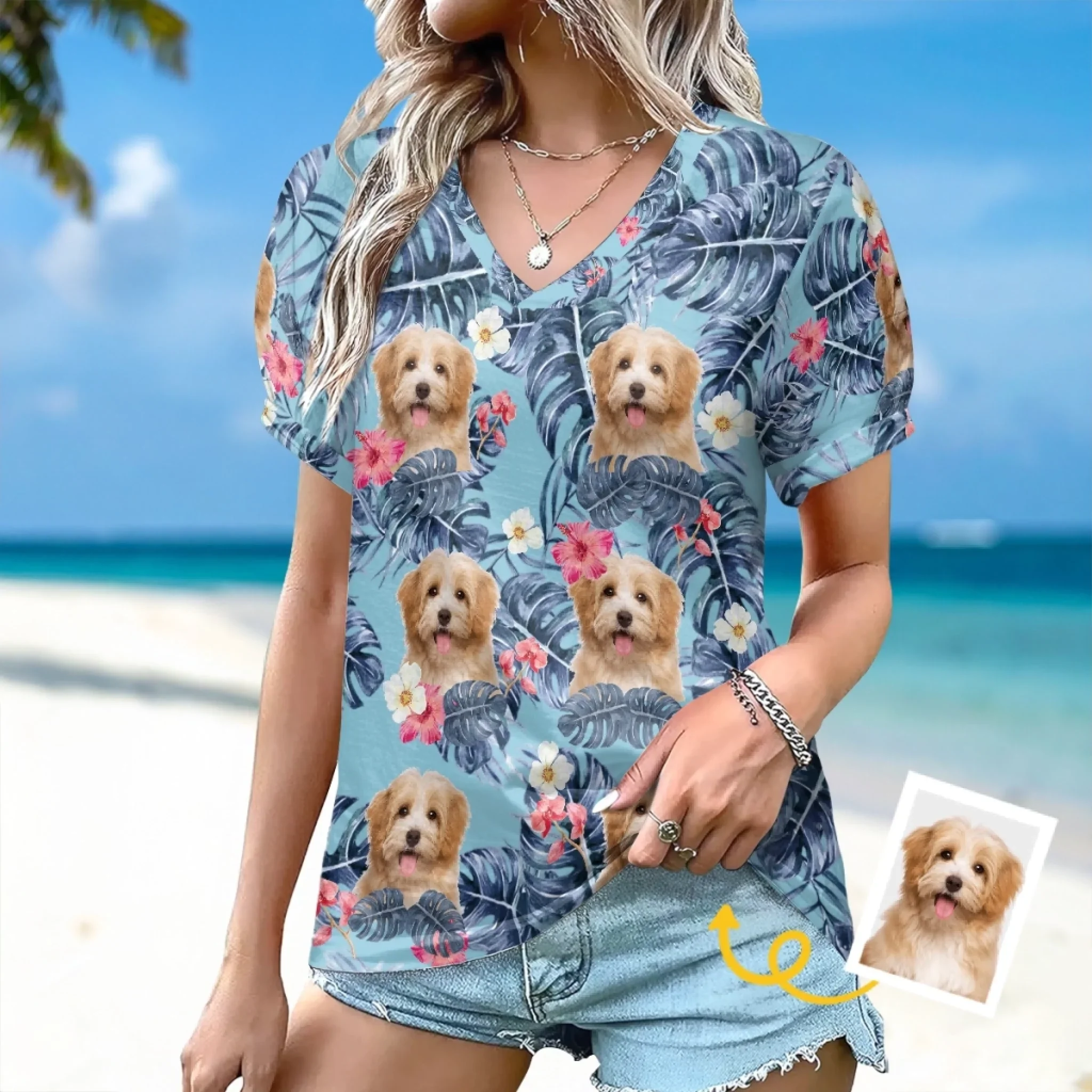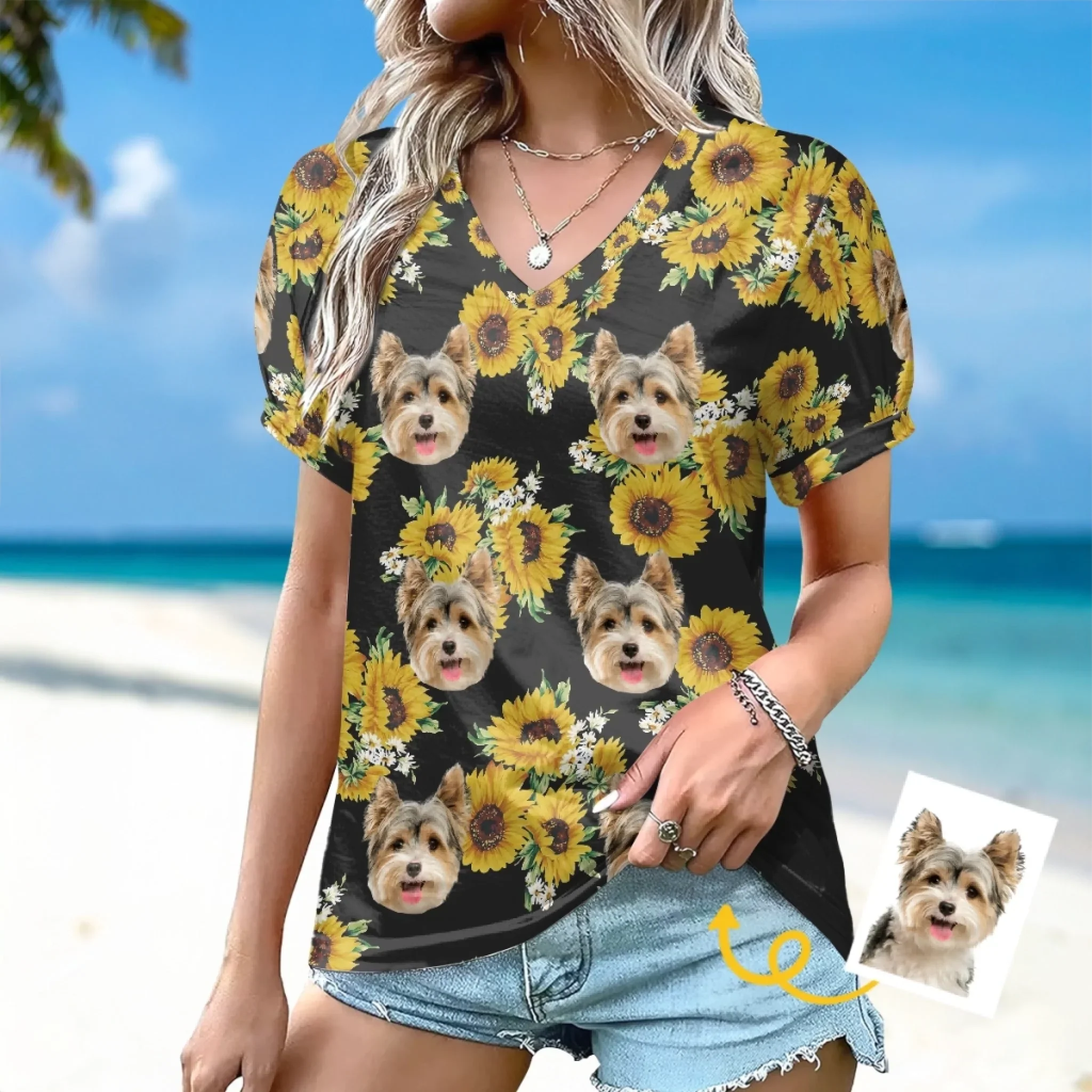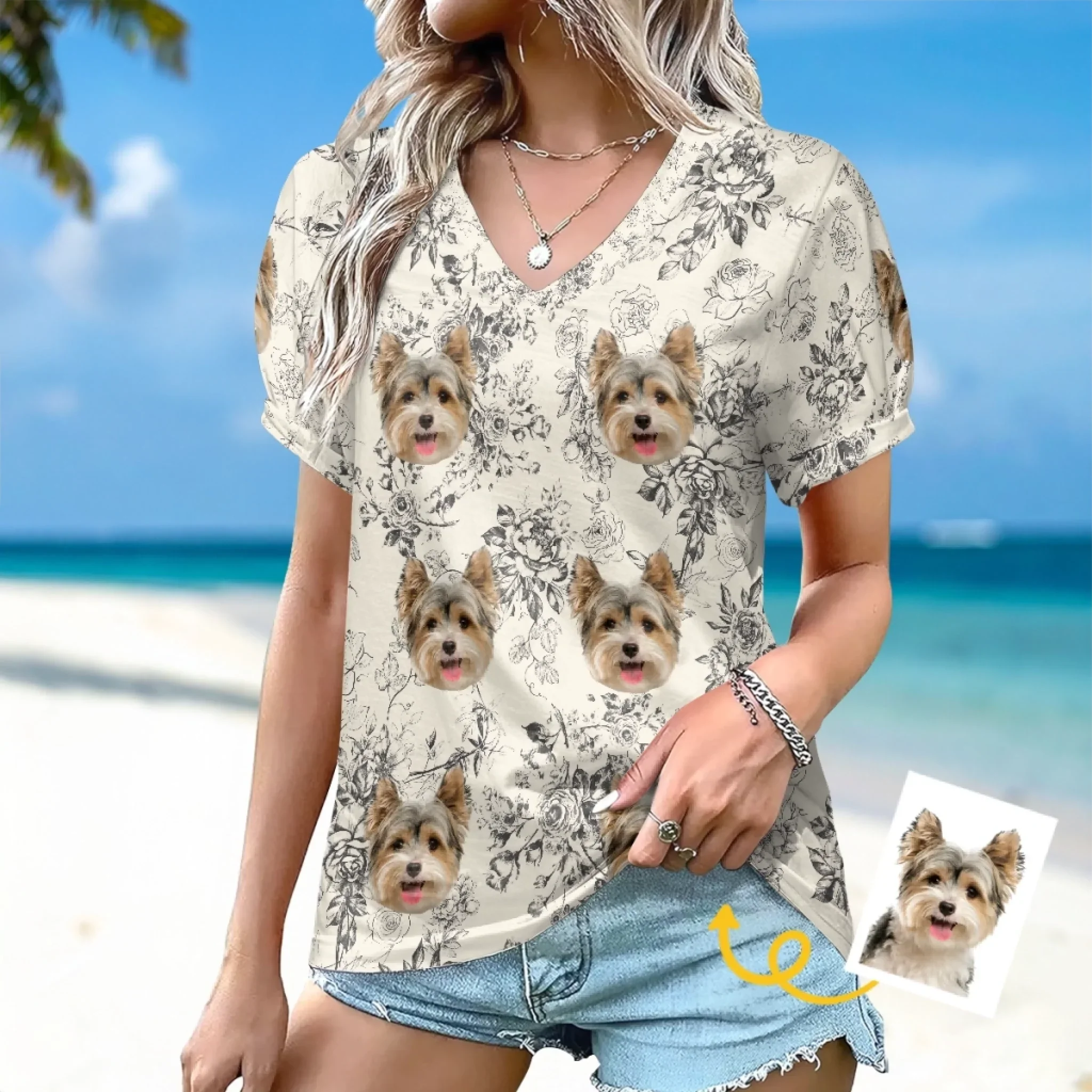 Custom Photo Puff Sleeve Shirt - Personalized Summer Vacation And Travel Gifts For Dog Cat Lovers, Dog Dad And Mom, Cat Owners - Family Vacation Starter Pack