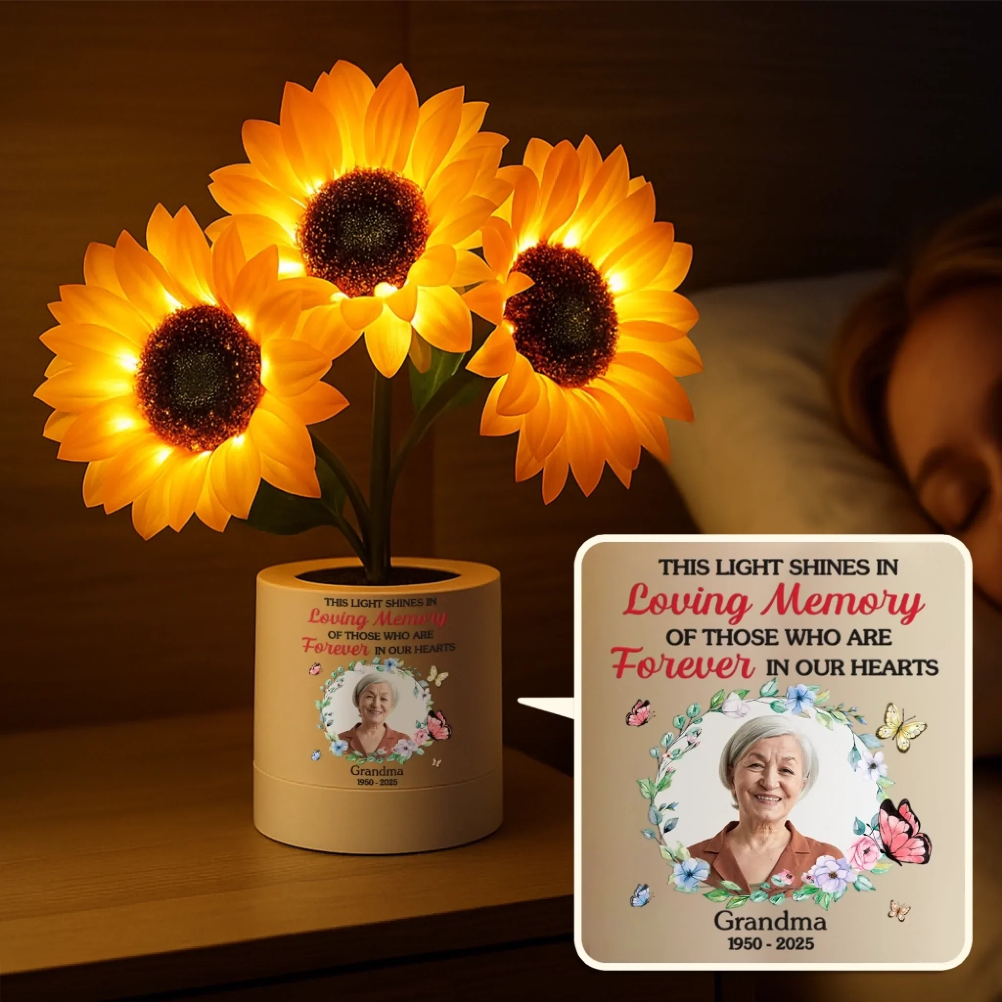 Custom Photo Sunflower Lamp Night Light - Personalized Memorial Sympathy Gifts For Loss Of Mom, Dad - Light Up The Memories