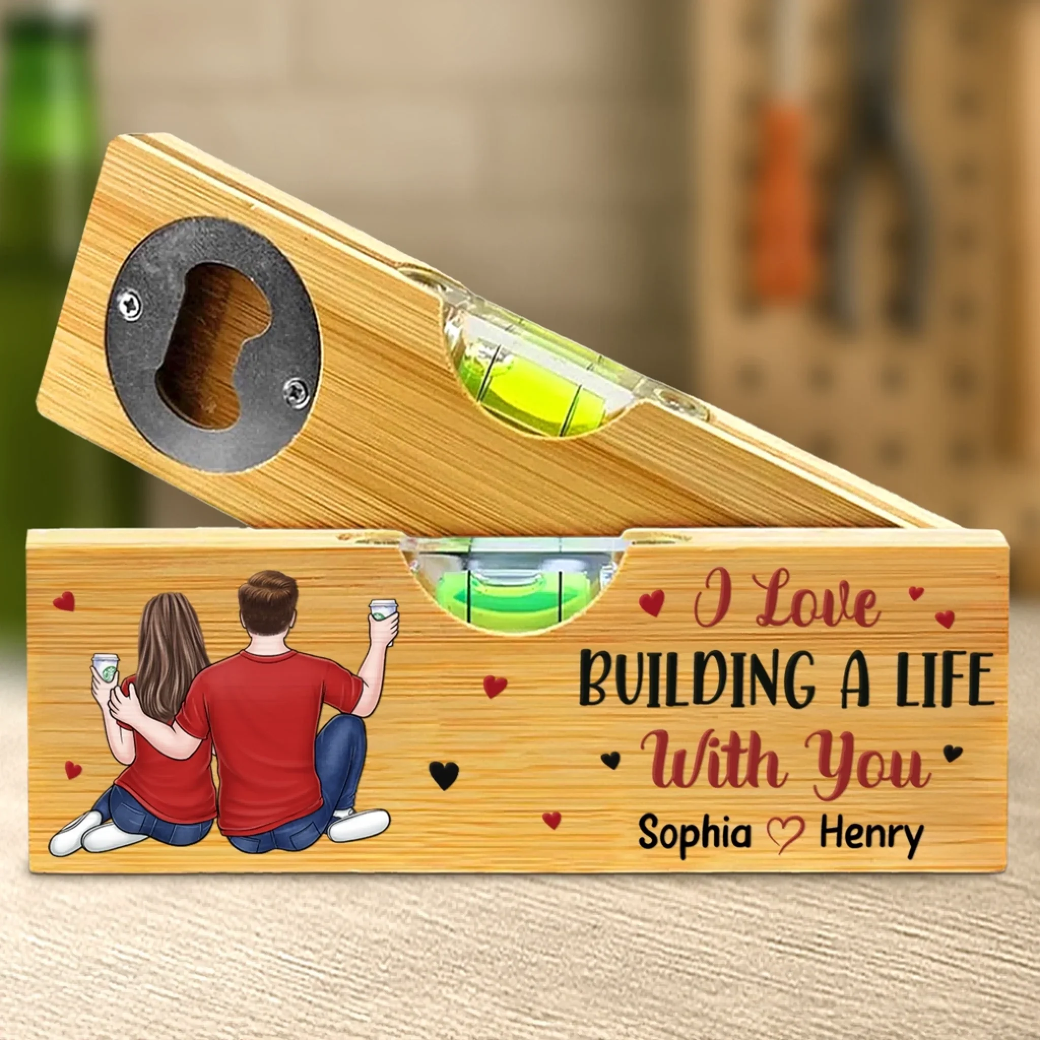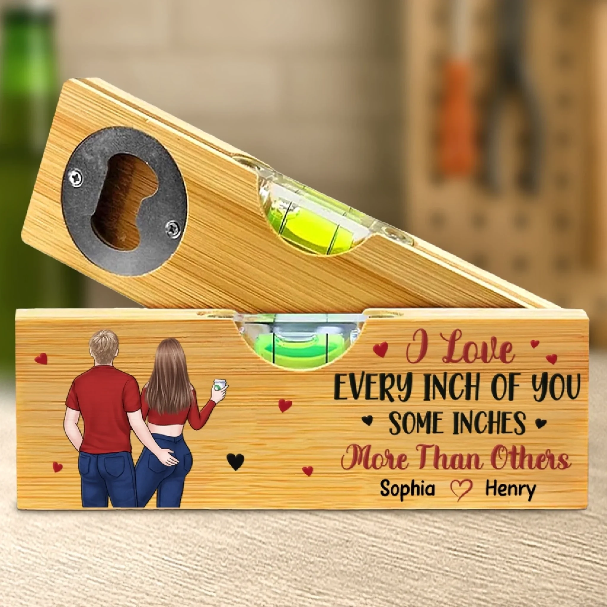 Custom Wooden Bottle Opener With Built-in Spirit Level - Personalized Anniversary Wedding Gifts For Husband And Wife, Him And Her - You And Me, Always