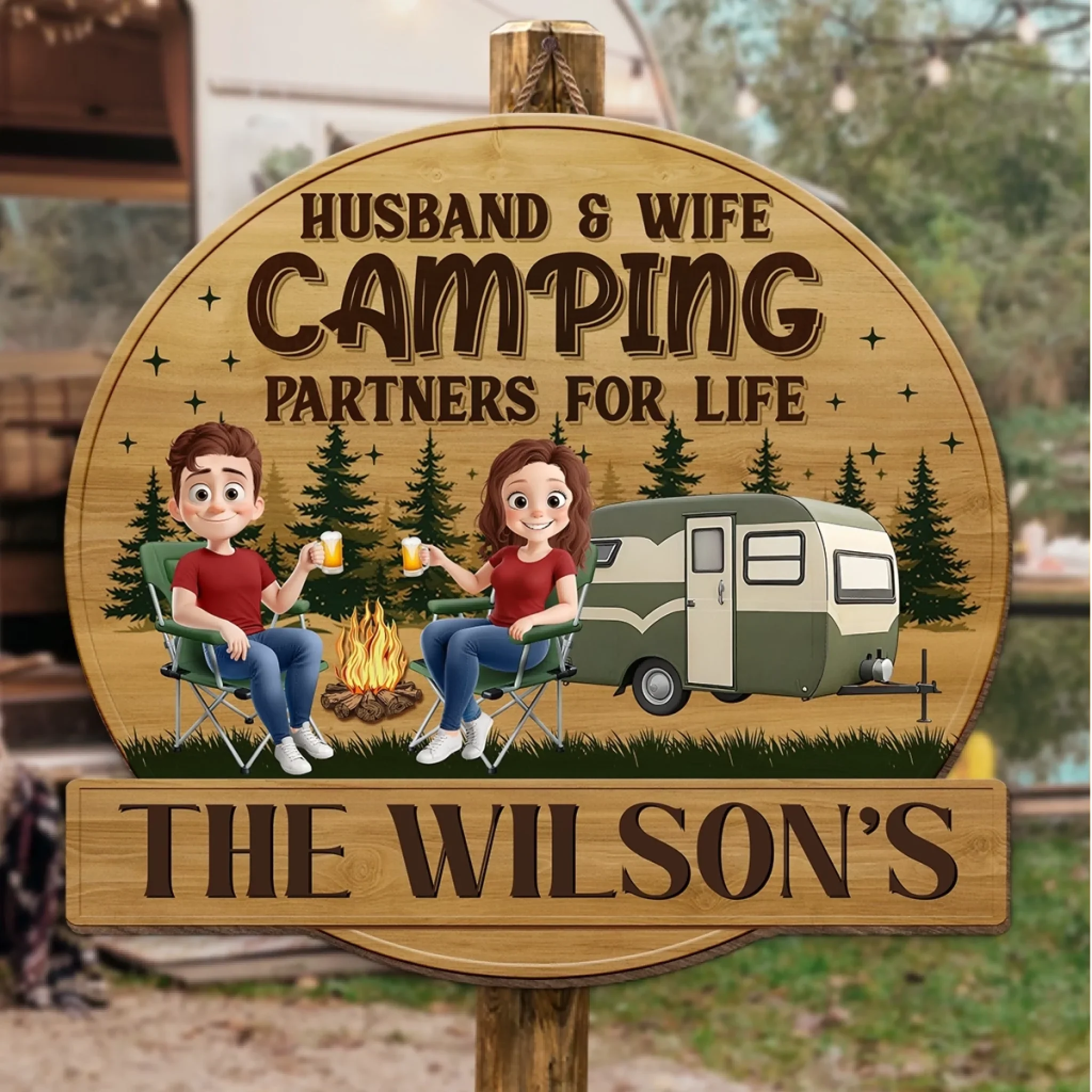 Custom Shaped Home Decor Wood Sign - Personalized Camping Gifts For Husband And Wife, Him And Her - Camping Partners For Life