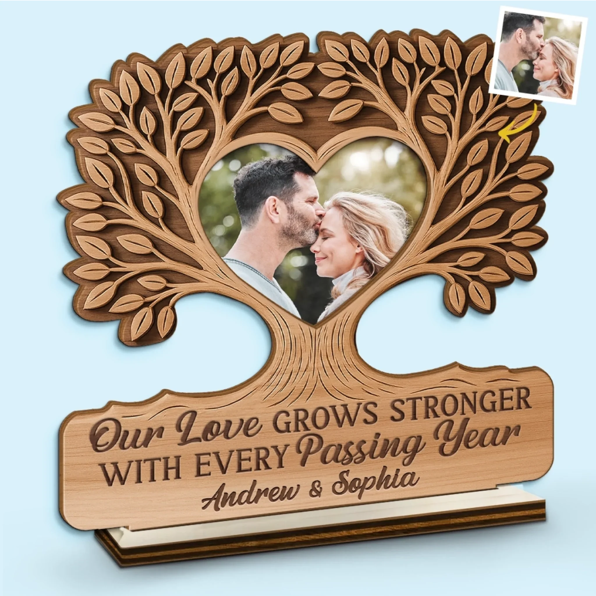 Custom Photo 2-Layered Wooden Plaque - Personalized Anniversary Wedding Gifts For Husband And Wife, Him And Her - Our Love Grows Deeper And Stronger