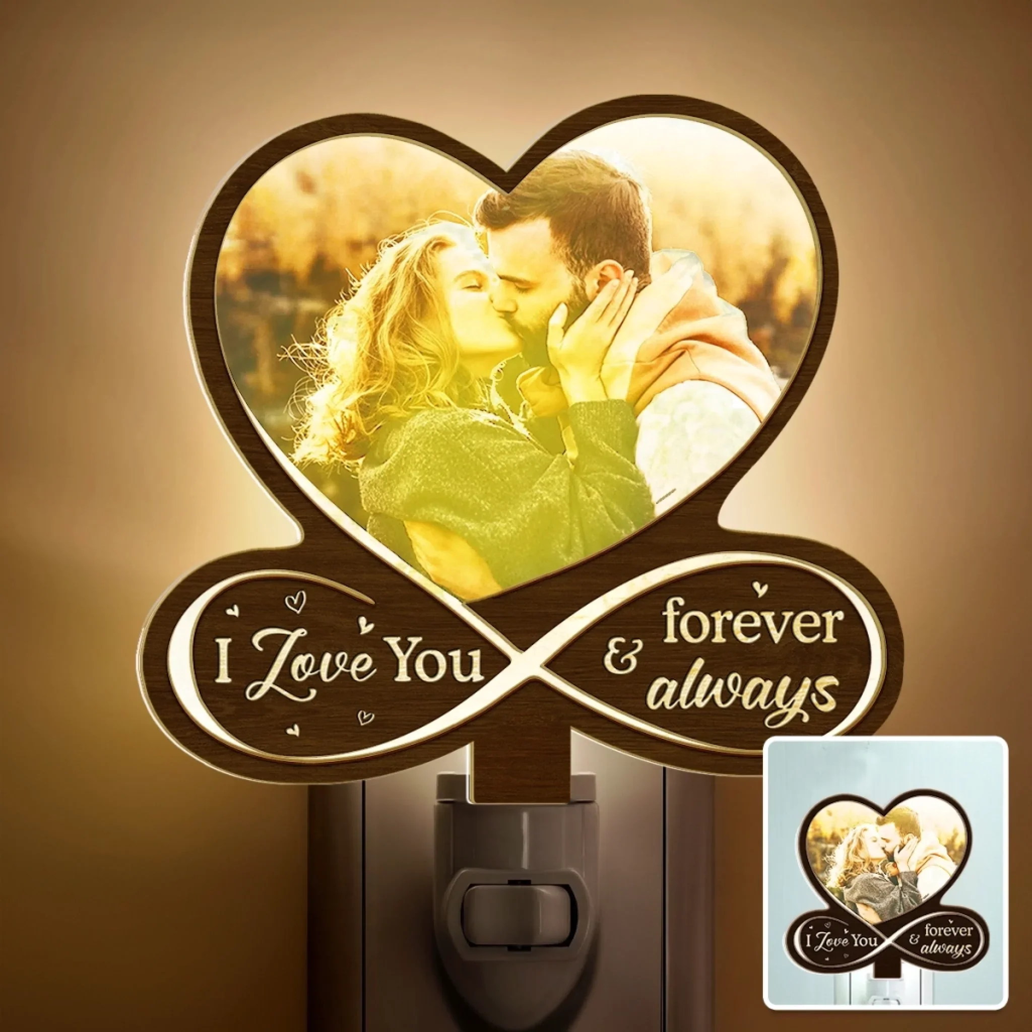 Custom Photo Wood And Acrylic Night Light - Personalized Anniversary Wedding Gifts For Husband And Wife, Him And Her - Built On Love