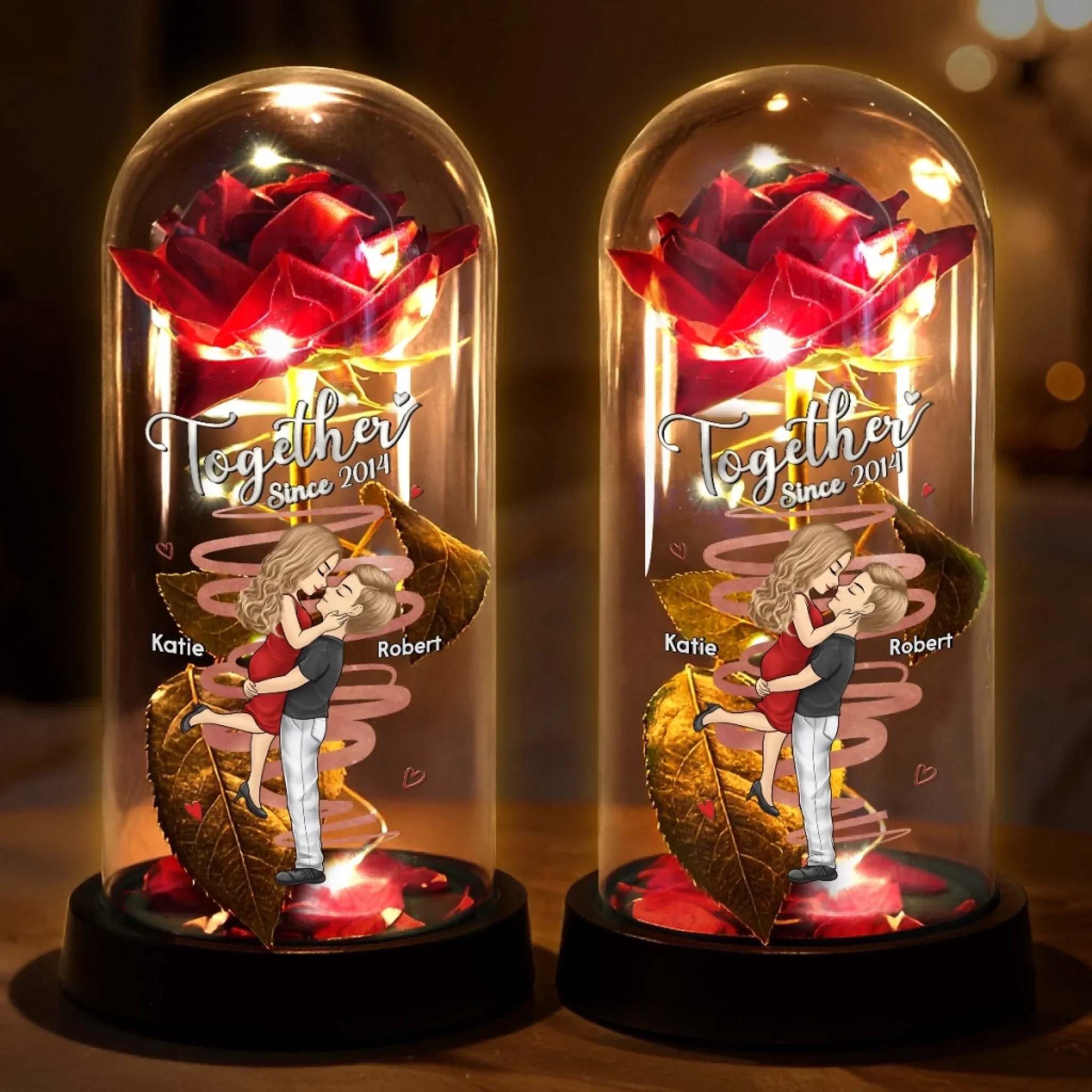Custom Light Up Eternal Rose In Glass Dome - Personalized Anniversary Wedding Gifts For Husband And Wife, Him And Her - Couple Vibes, Rose Edition