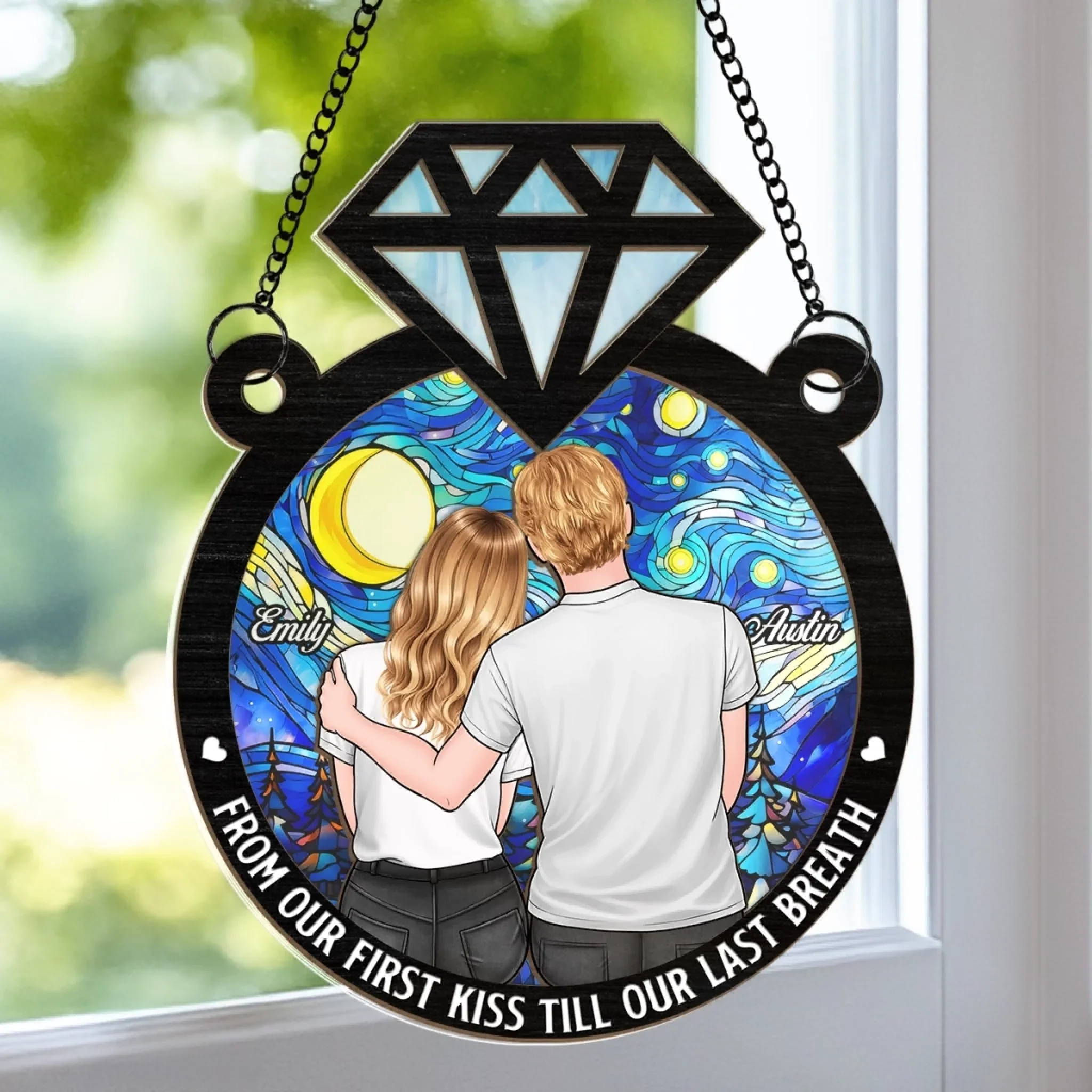 Custom Window Hanging Suncatcher Ornament - Personalized Anniversary Wedding Gifts For Husband And Wife, Him And Her - Forever Starts With You
