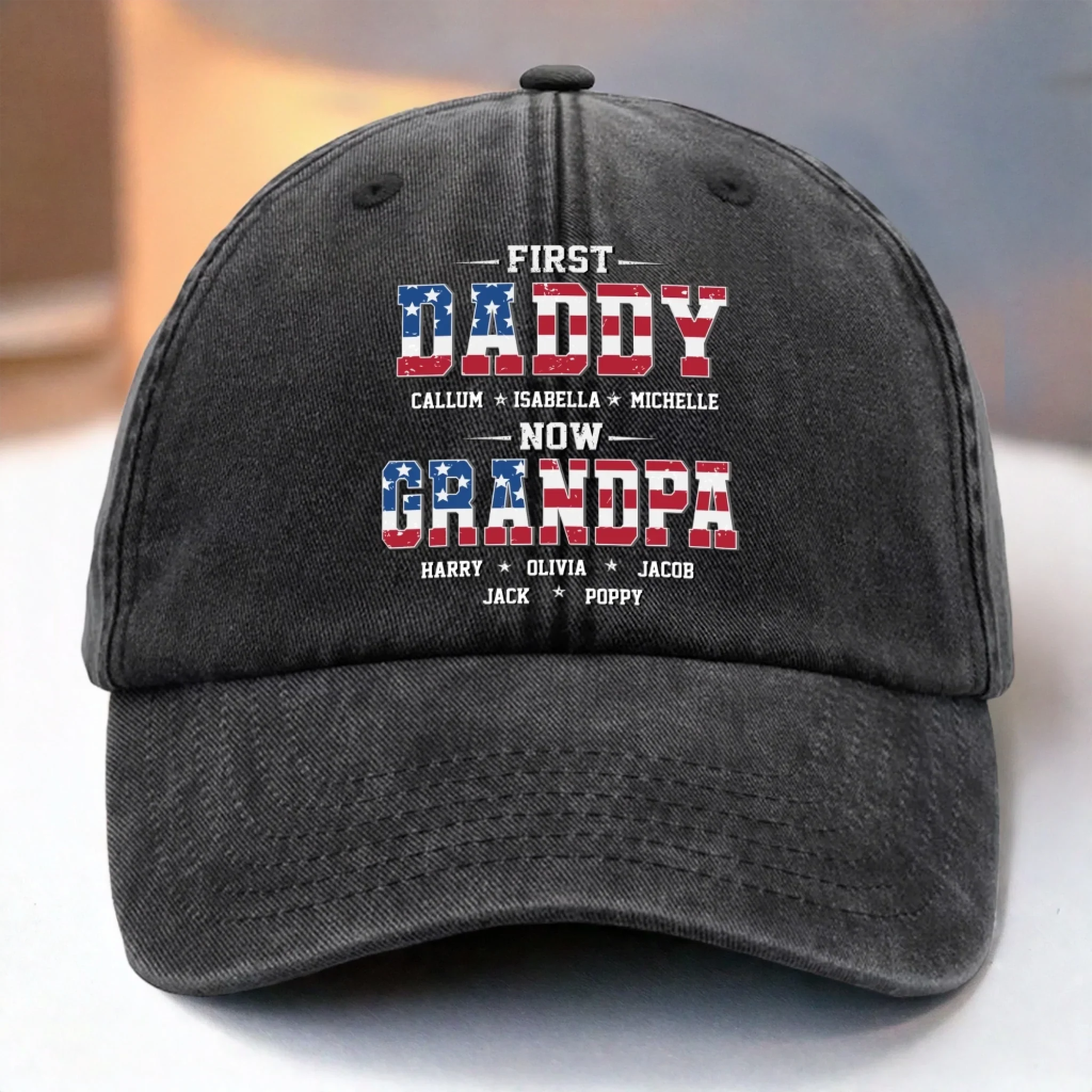 Custom Vintage Washed Denim Baseball Cap US - Personalized 4th Of July Gifts For Dad, Grandpa - First Dad, Now Grandpa