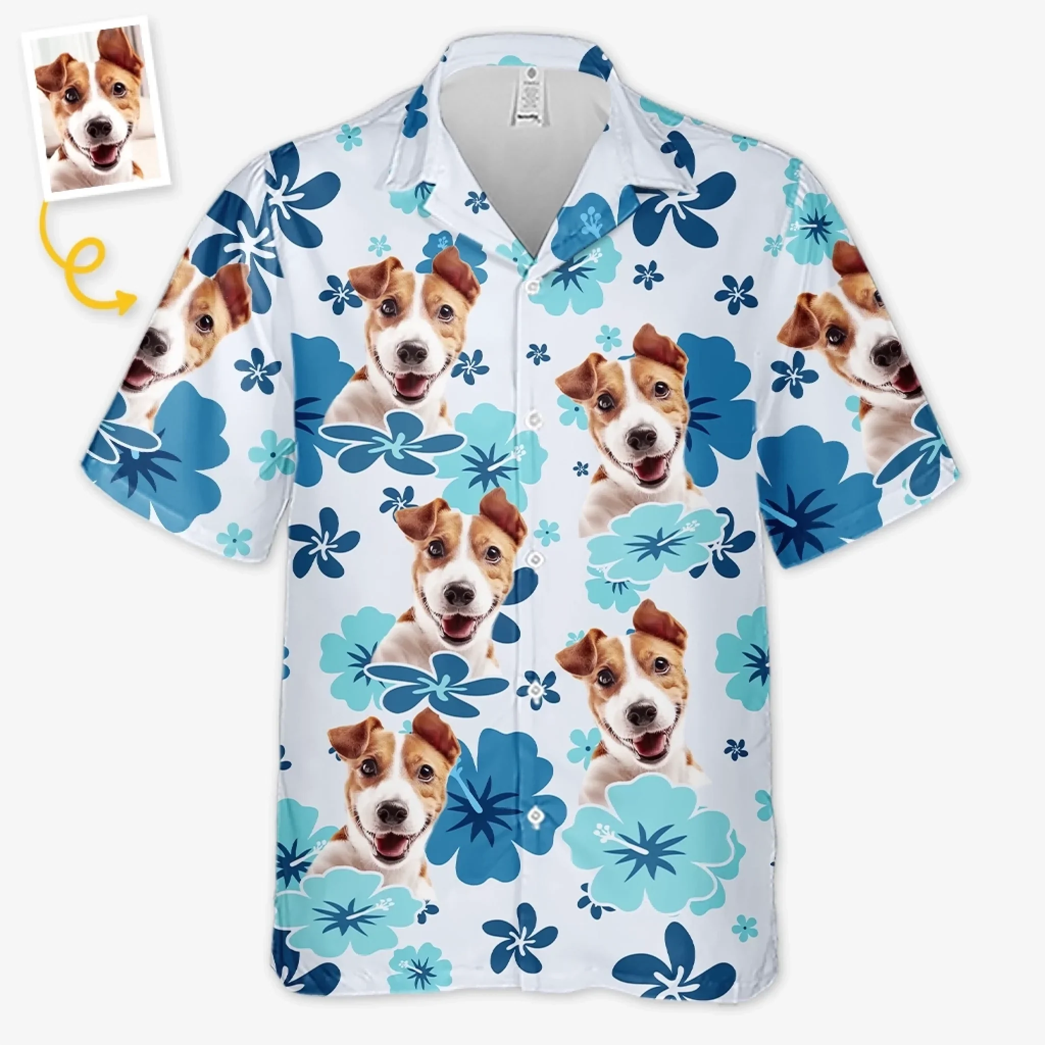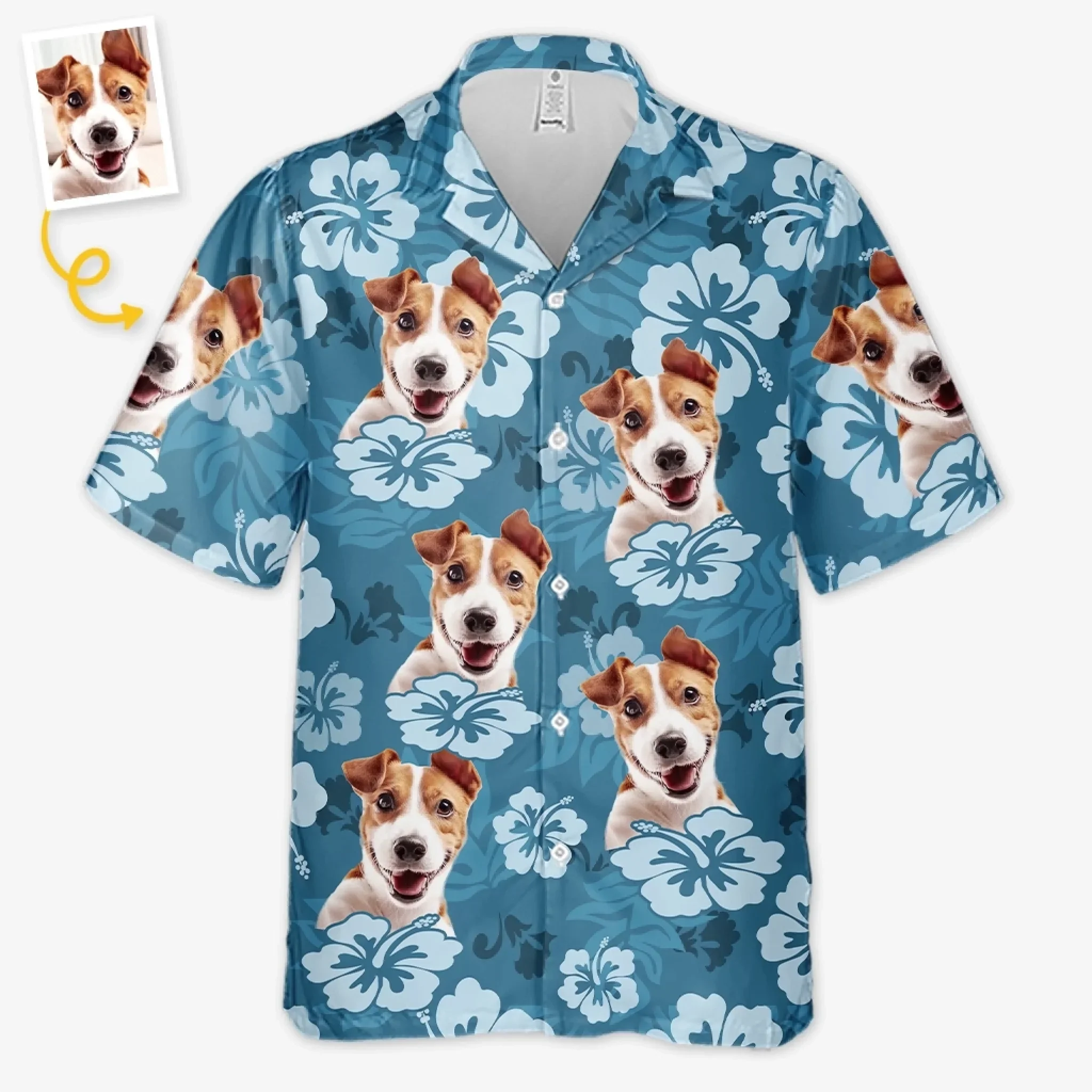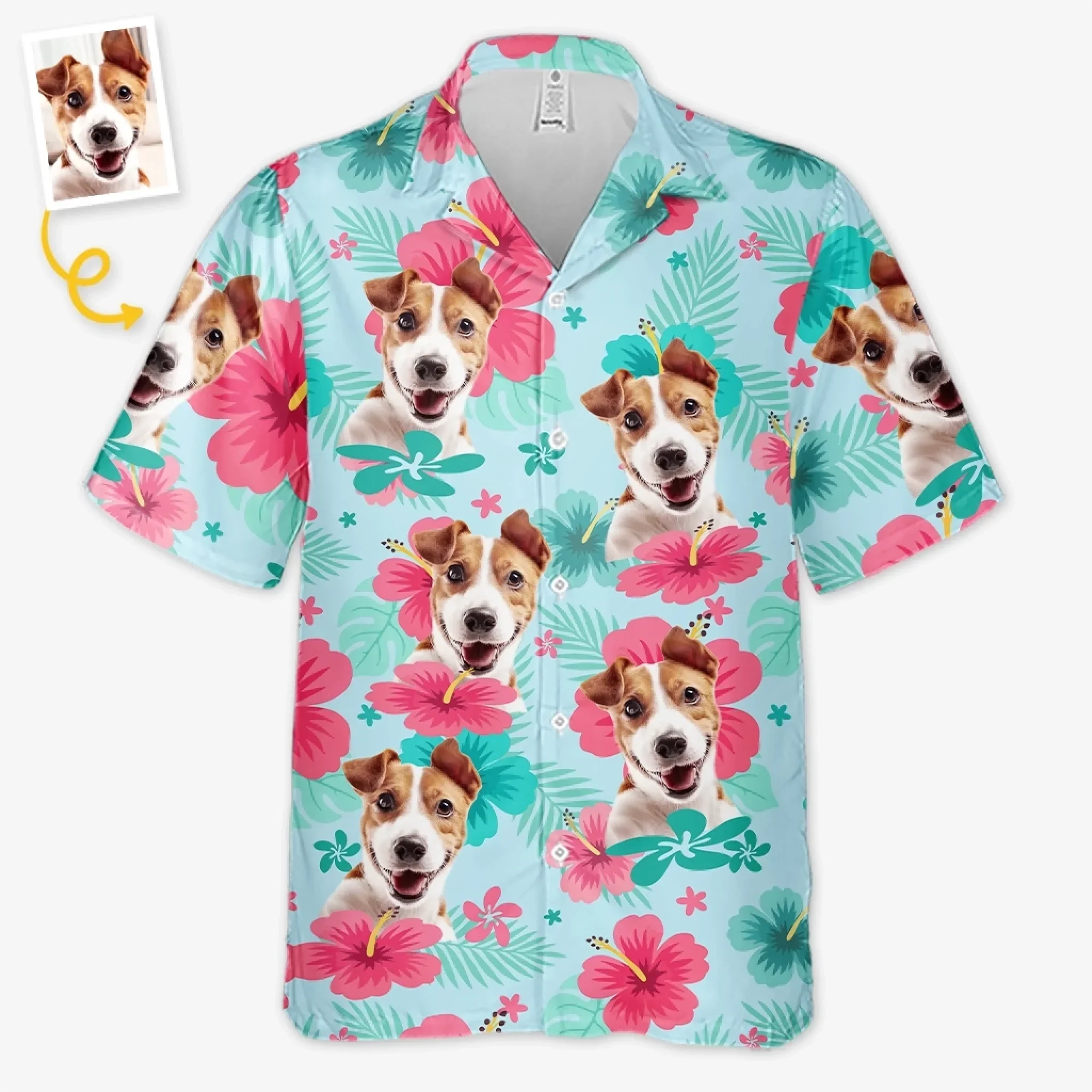 Custom Photo Unisex Tropical Hawaiian Aloha Shirt - Personalized Summer Vacation And Travel Gifts For Dog Cat Lovers, Dog Dad And Mom, Cat Owners - Island Vibes, Puppy Love