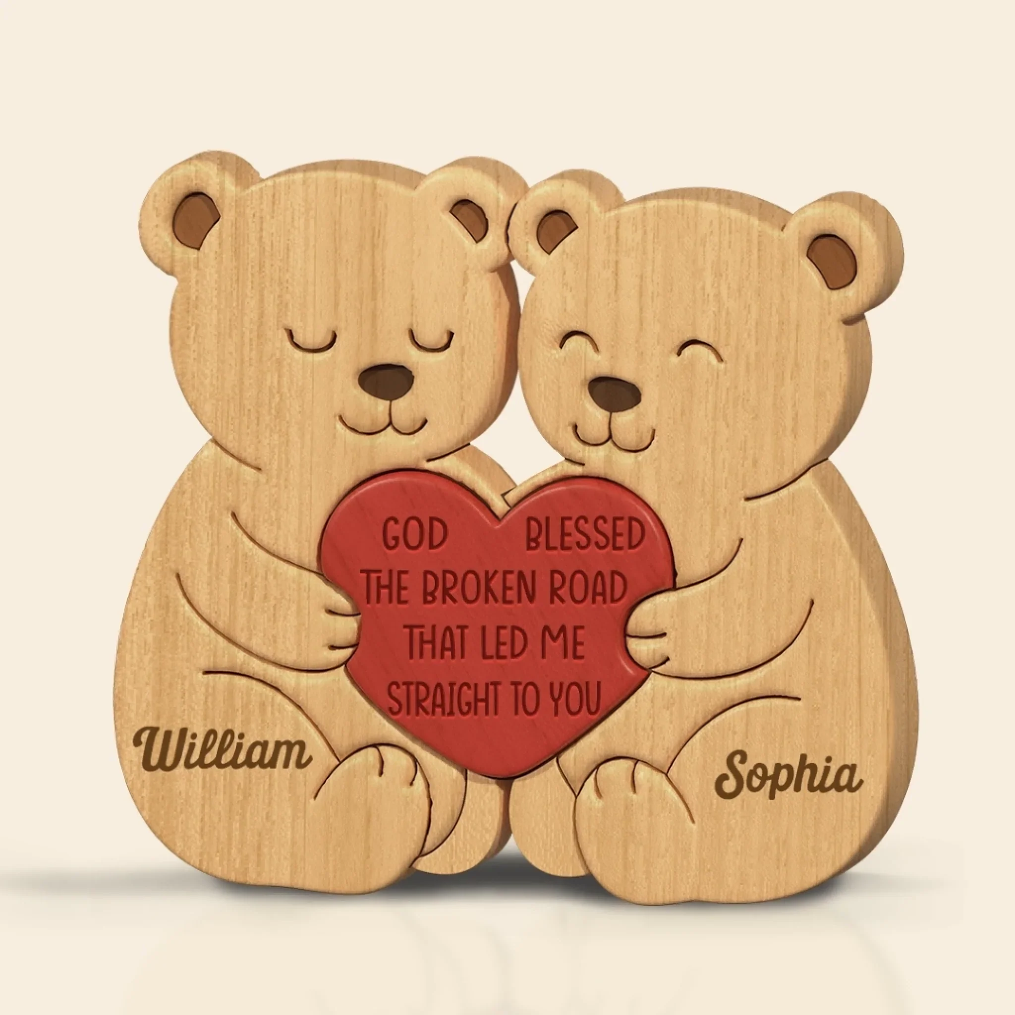 Custom Bear Shaped Wooden Art Puzzle - Personalized Anniversary Wedding Gifts For Husband And Wife, Him And Her - Destined To Meet You