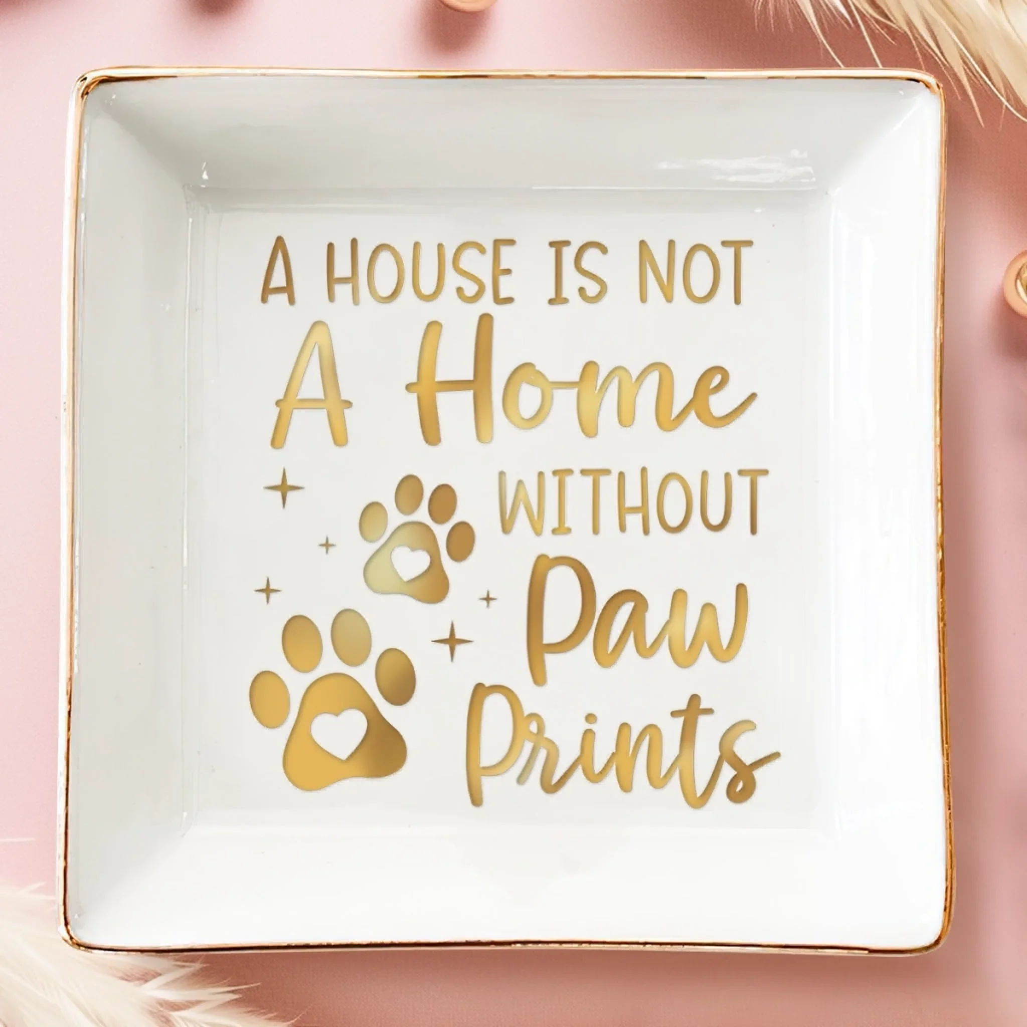 Full-Print Jewelry Dish - Birthday Gifts For Dog Cat Lovers, Dog Dad And Mom, Cat Owners - Paws Fill The Heart With Joy