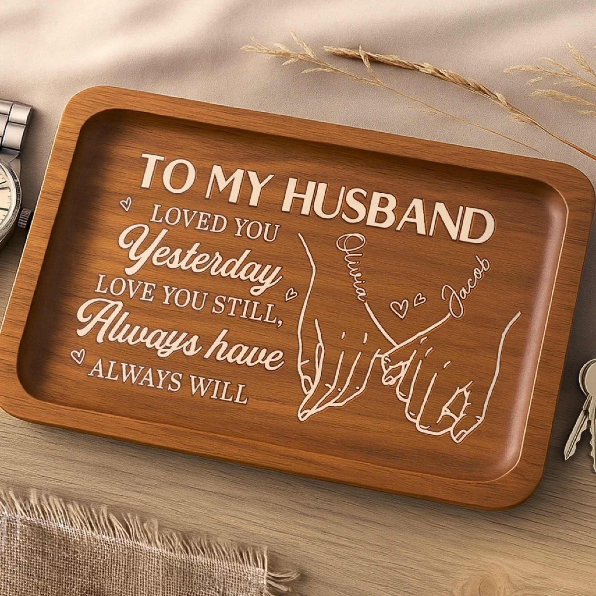 Custom Wooden Valet Tray - Personalized Anniversary Wedding Gifts For Husband And Wife, Him And Her - Thank You For Being My Forever, Couple Birthday Gifts For Him And Her