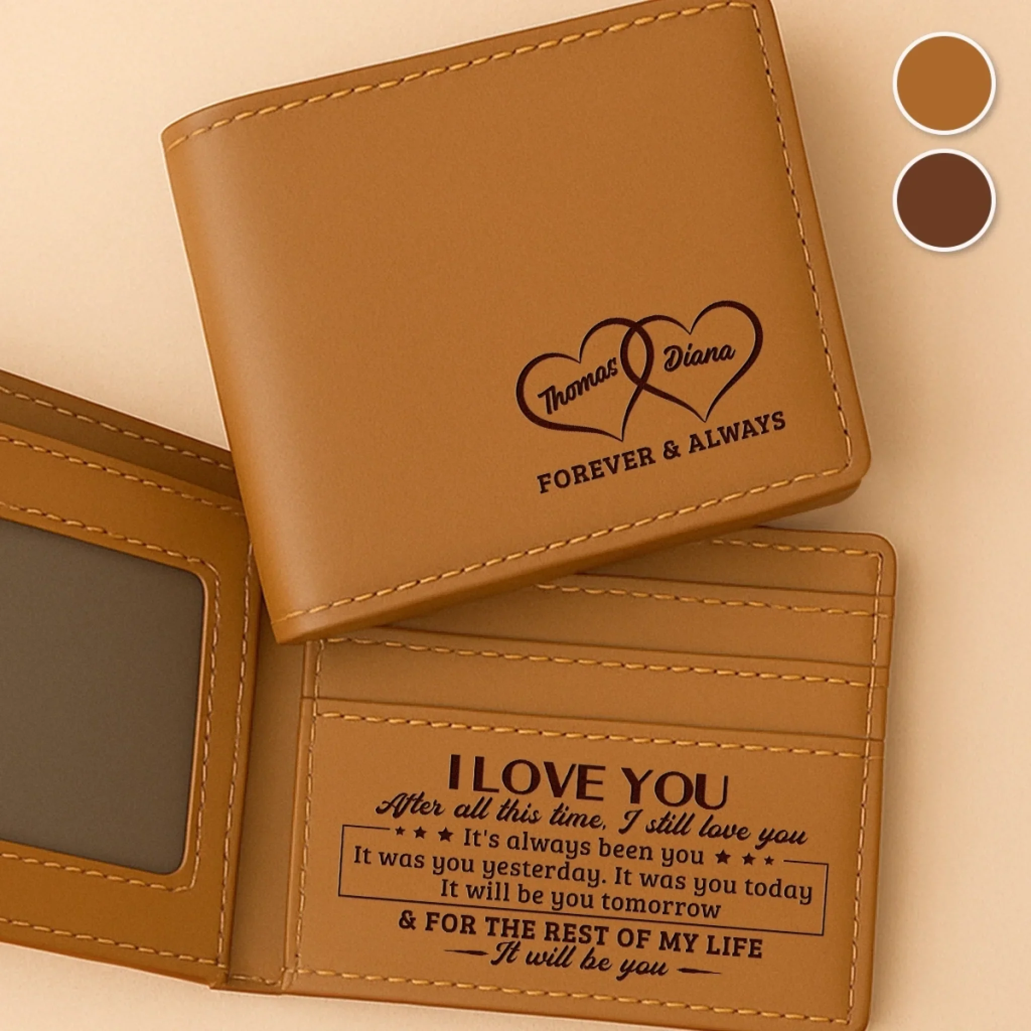 Custom Engraved Bifold Leather Wallet Two Sides - Personalized Anniversary Wedding Gifts For Husband And Wife, Him And Her - Endlessly In Love With You