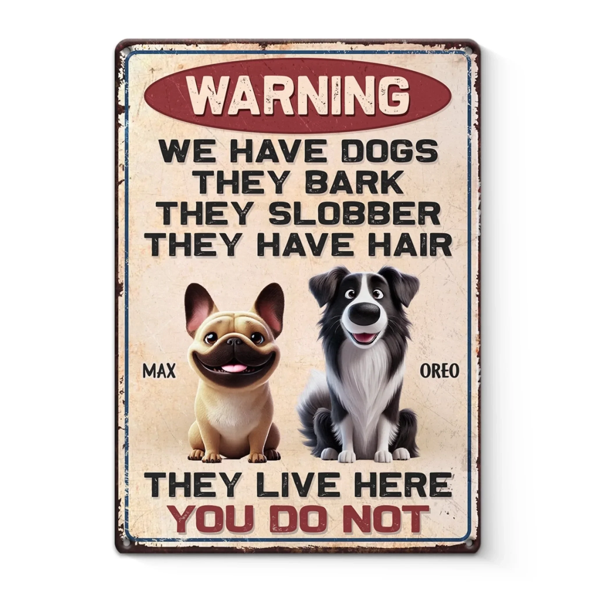 Custom Home Decor Metal Sign - Personalized Birthday Gifts For Dog Lovers, Dog Dad And Mom - They Live Here, You Do Not
