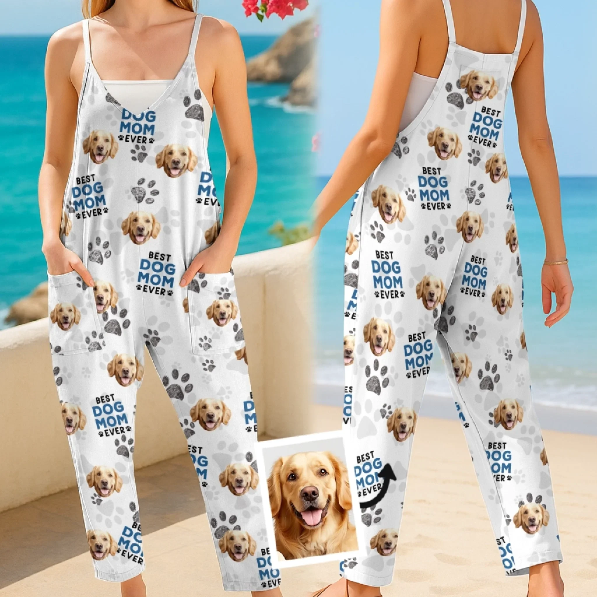 Custom Photo Casual Loose Overalls Jumpsuit - Personalized Summer Vacation And Travel Gifts For Dog Cat Lovers, Dog Dad And Mom, Cat Owners - Pup Life, Best Life