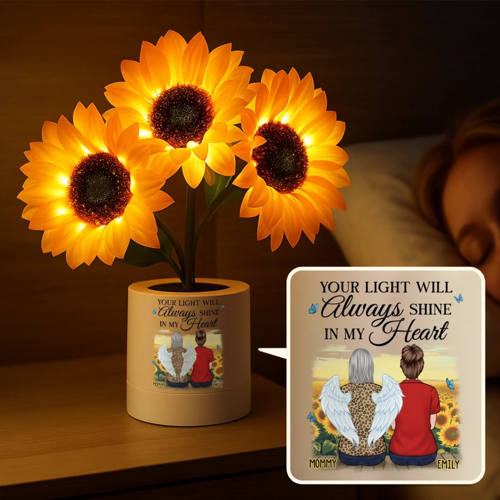 Custom Sunflower Lamp Night Light - Personalized Memorial Sympathy Gifts For Loss Of Mom, Dad - Memories Shine Through Every Darkness