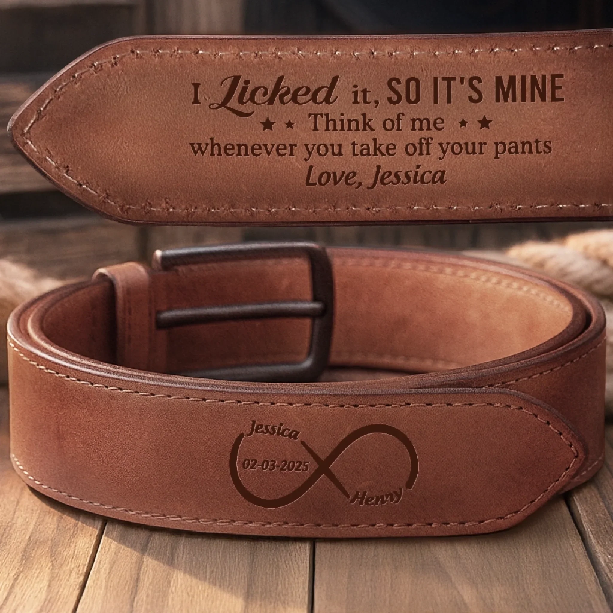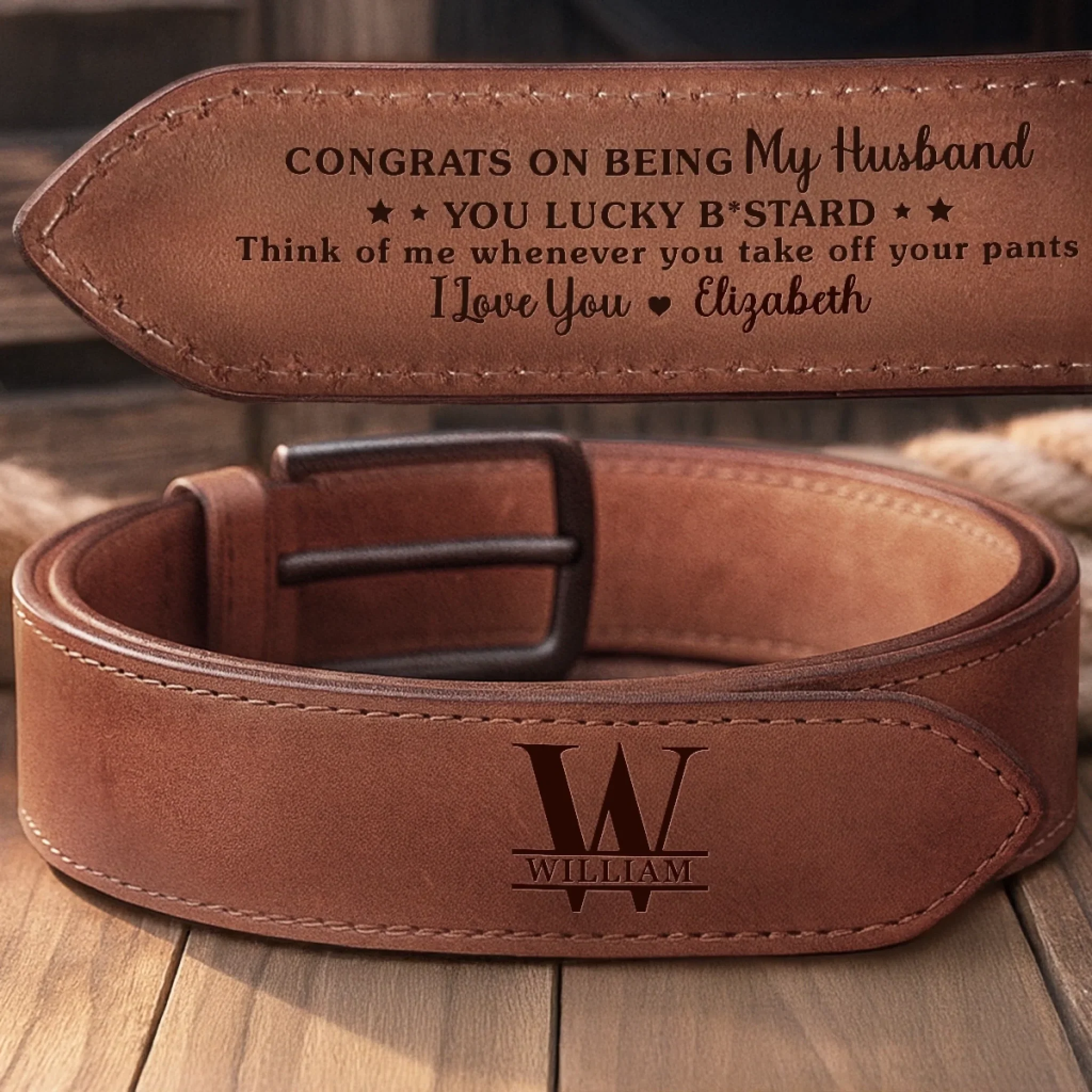 Custom Double-Sided Engraved Leather Belt - Personalized Anniversary Wedding Gifts For Husband And Wife, Him And Her - Belting Out My Love