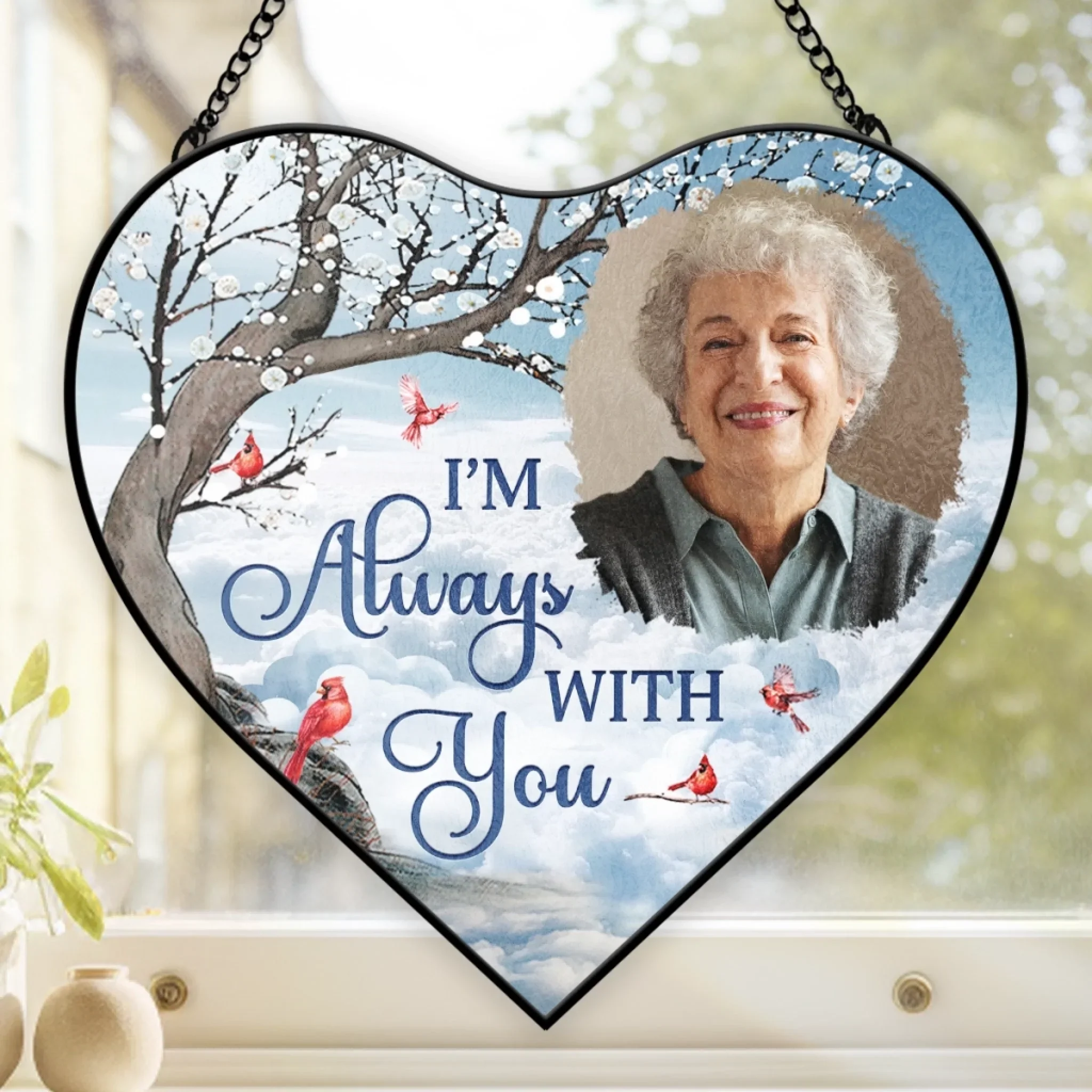 Custom Photo Heart-Shaped Stained Glass Window Suncatcher - Personalized Memorial Sympathy Gifts For Loss Of Mom, Dad - Always In Our Thoughts