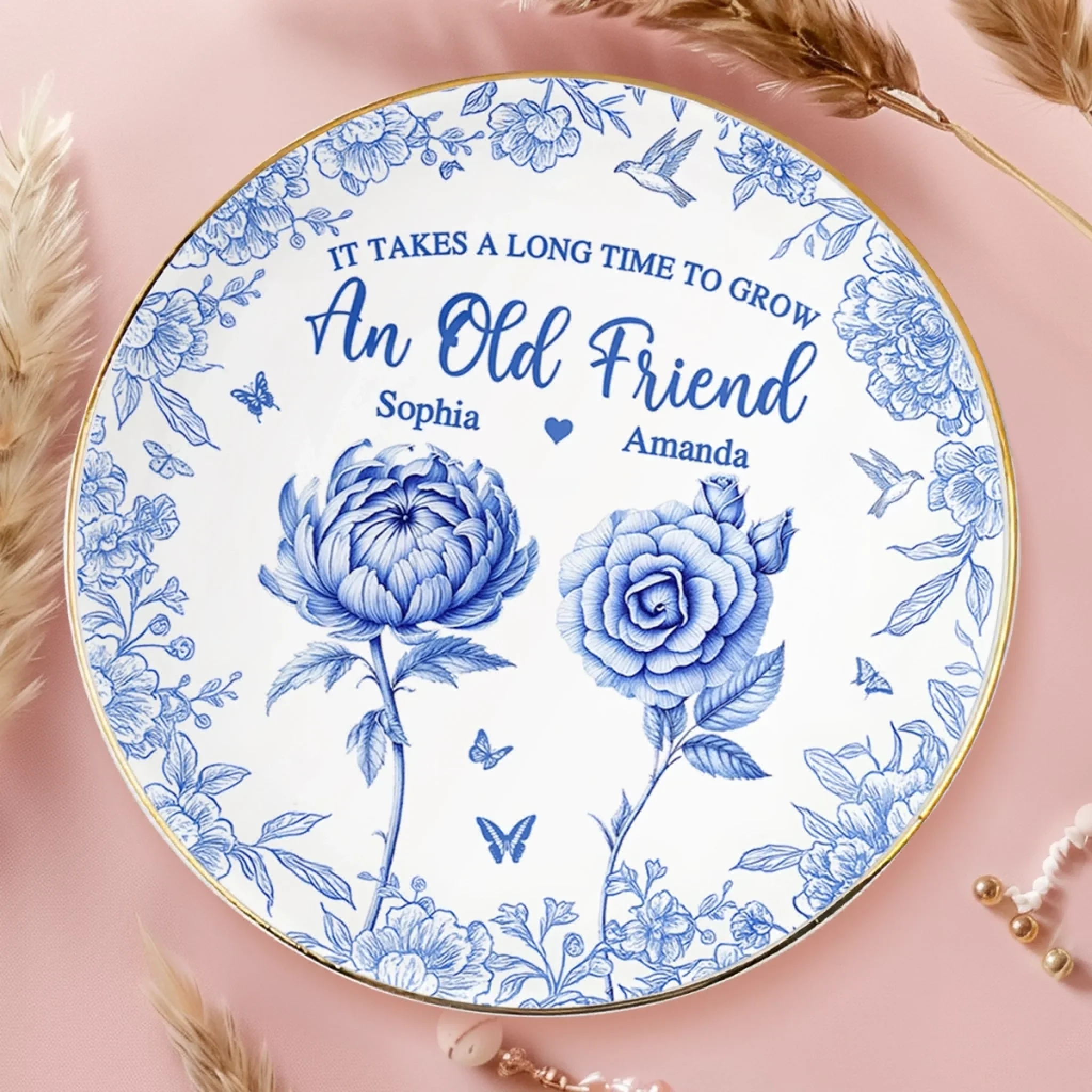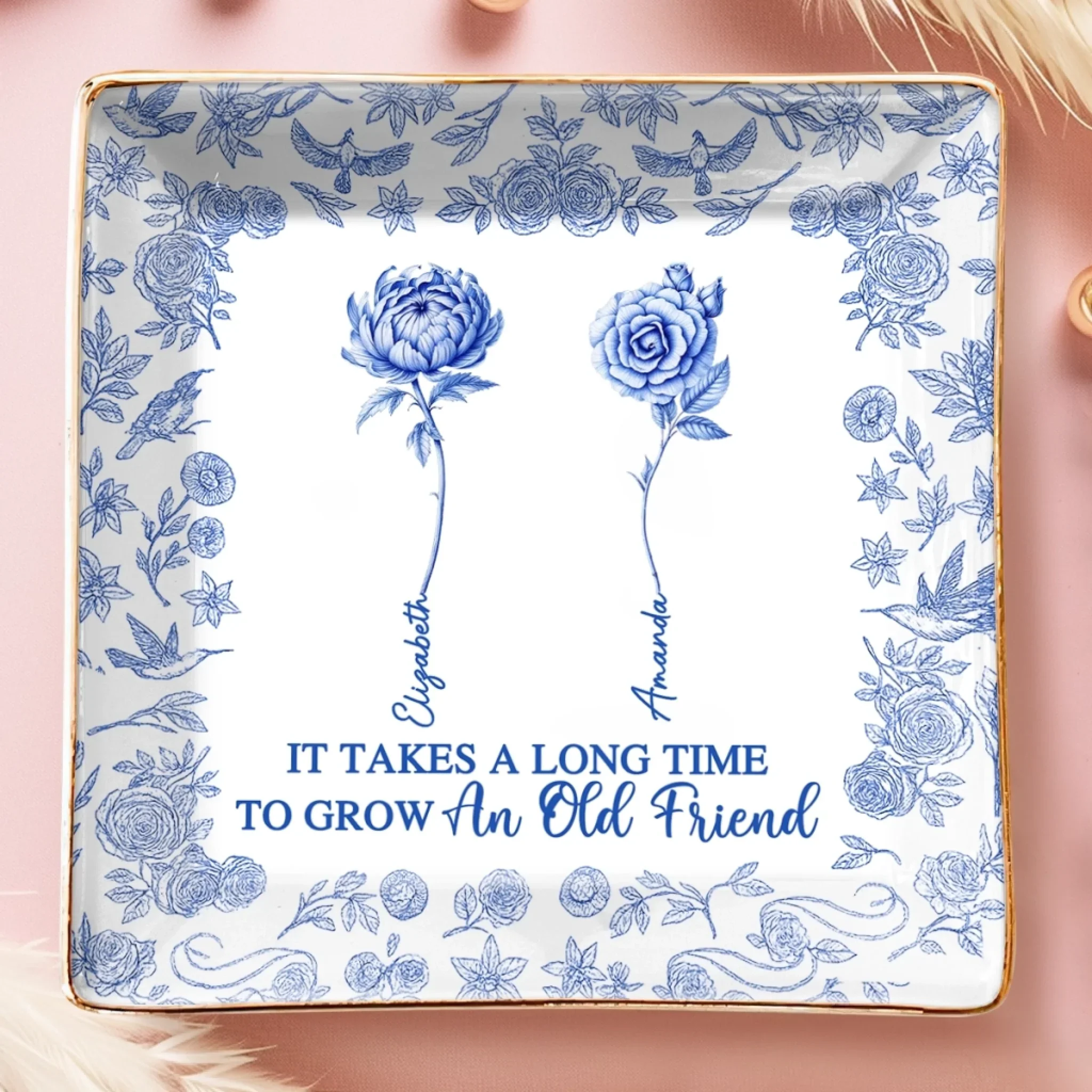 Custom Full-Print Jewelry Dish - Personalized Best Friend Birthday Gifts For Women - It Takes A Long Time To Grow Old Friends