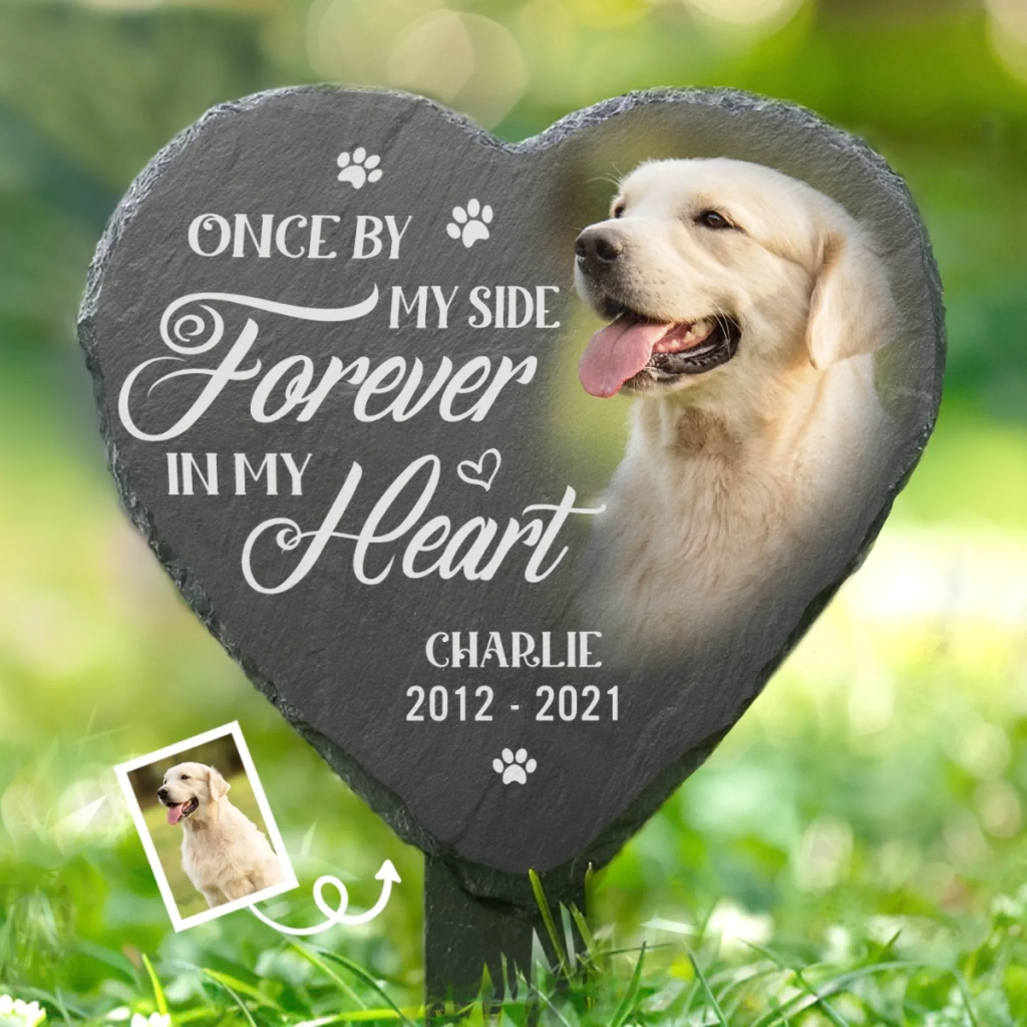 Custom Photo Slate Garden Stake - Personalized Pet Memorial Gifts For Dogs, Cats - Hearts Hold Eternal Memories