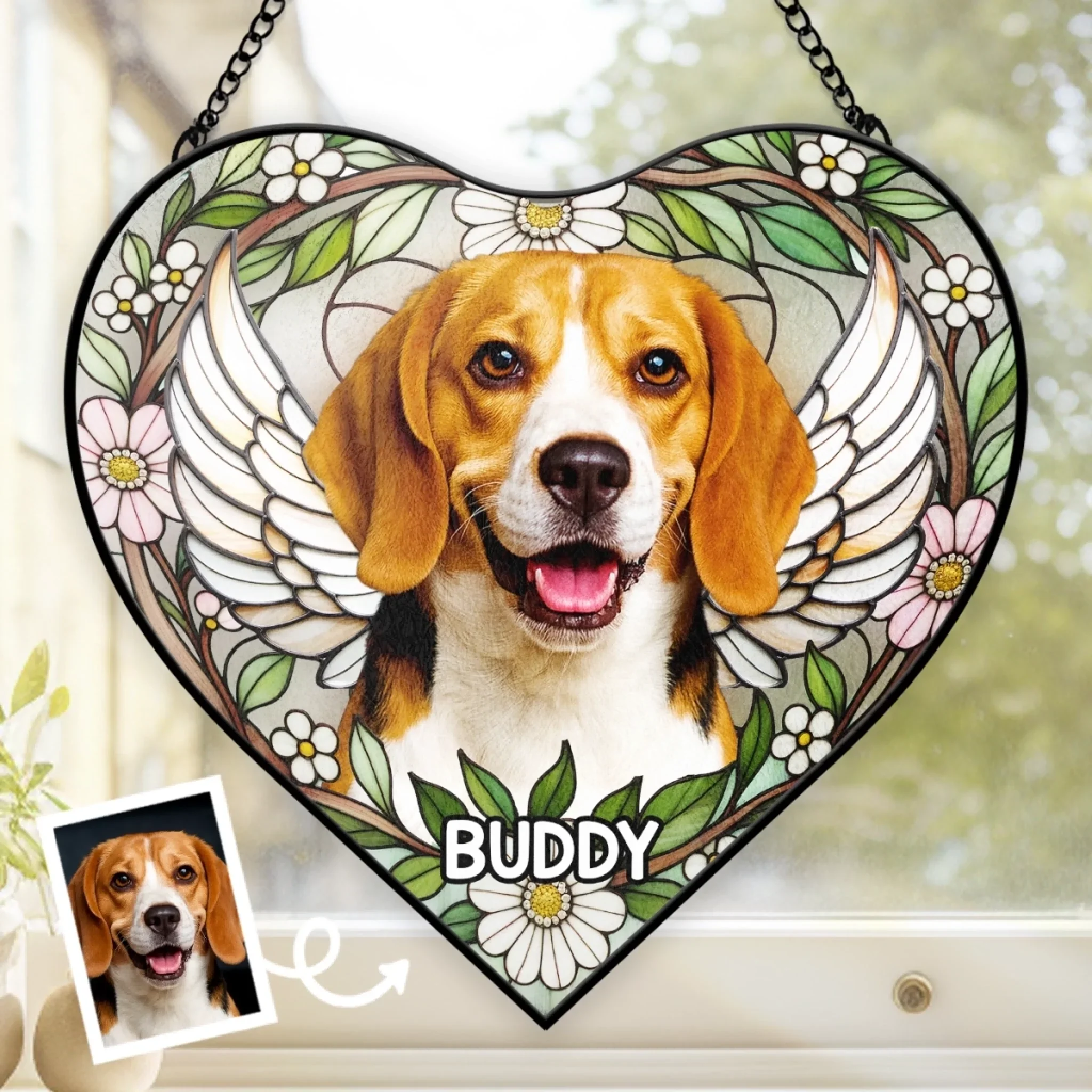 Custom Photo Heart-Shaped Stained Glass Window Suncatcher - Personalized Pet Memorial Sympathy Gifts For Dogs, Cats - Love Lives On Always