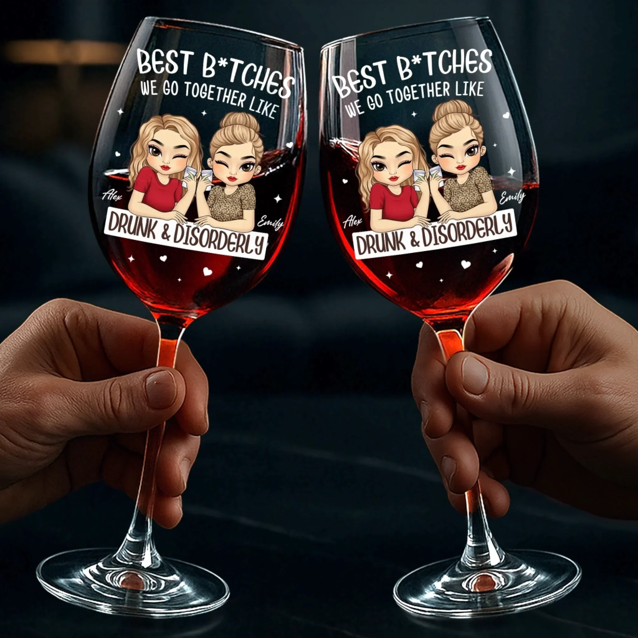 Custom Stemmed Wine Glass - Personalized Best Friend Birthday Gifts For Women - Drunk Together, Stay Together