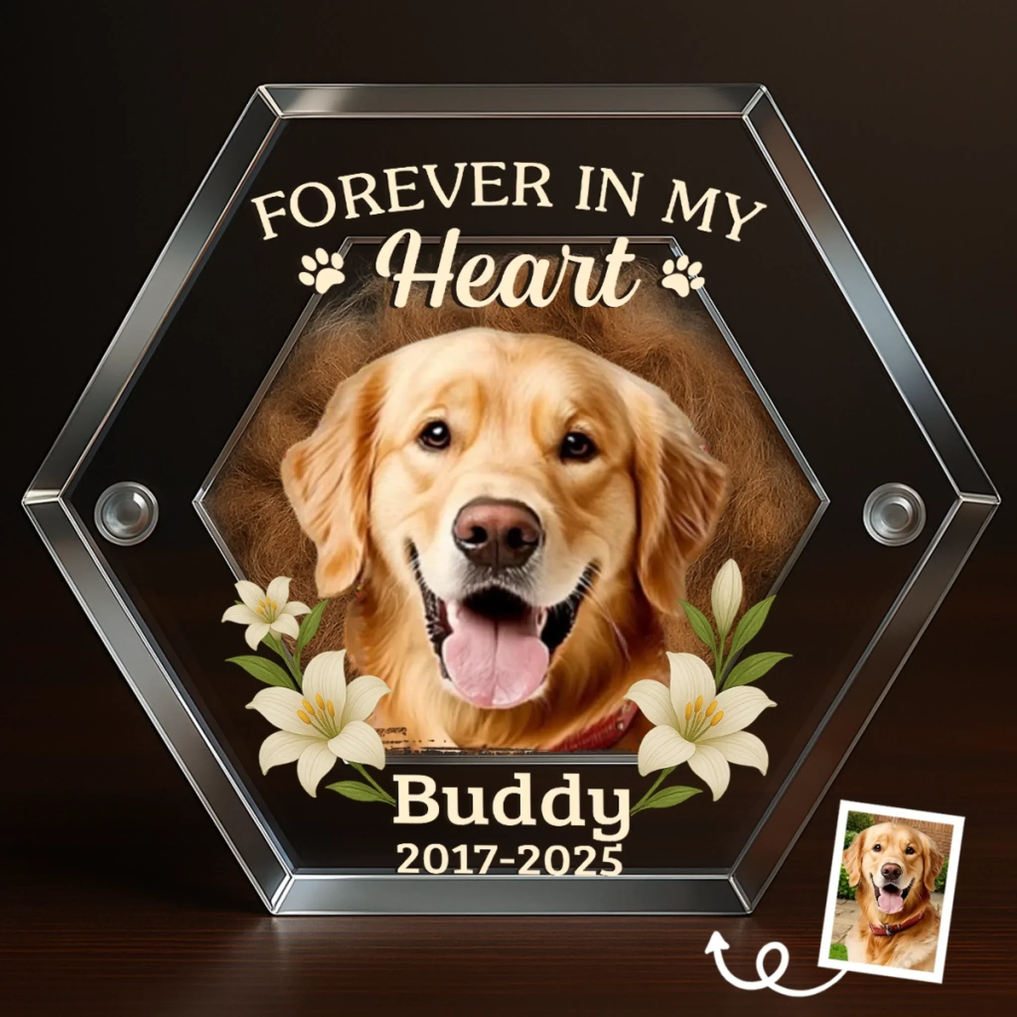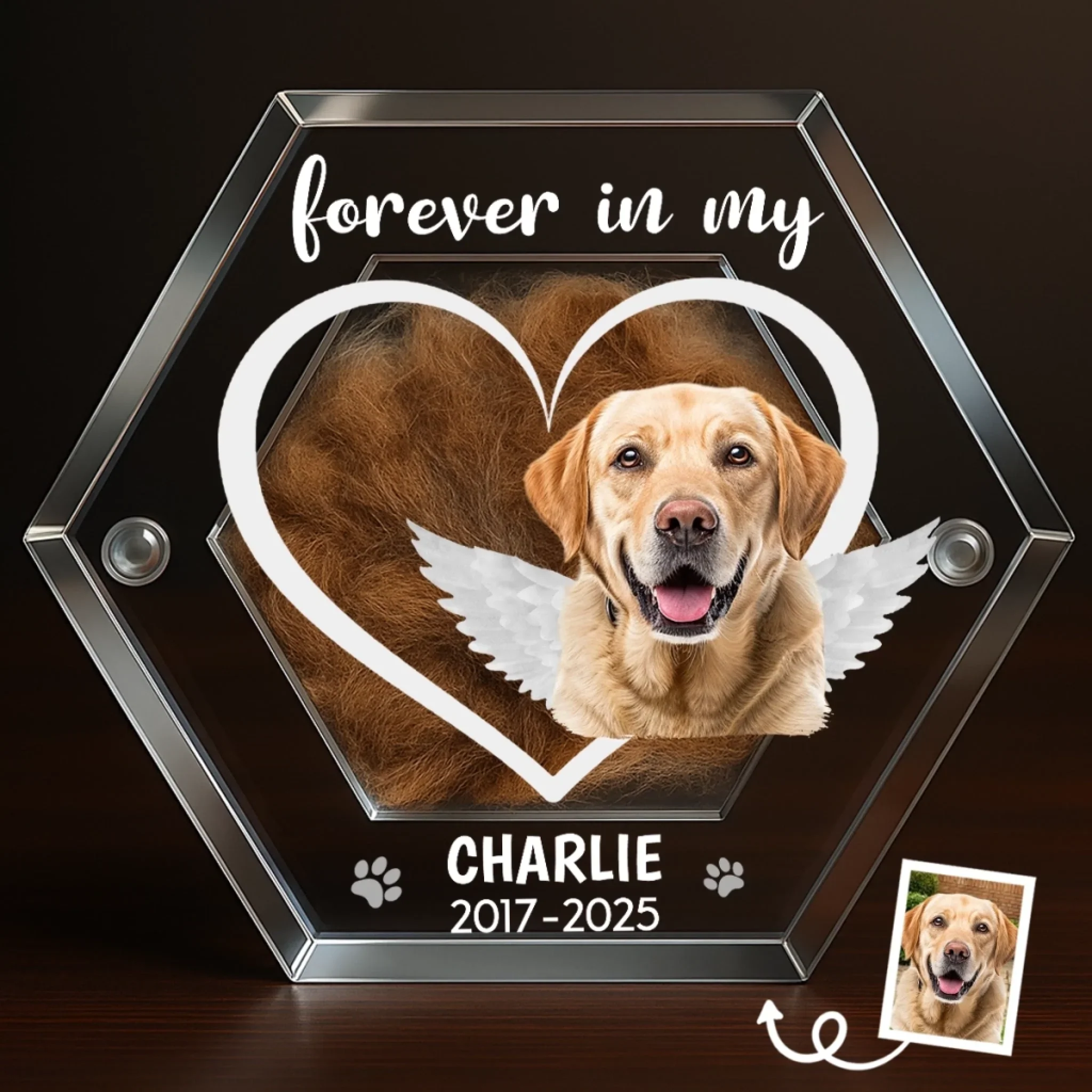 Custom Photo Acrylic Pet Fur Keepsake Box - Personalized Pet Memorial Sympathy Gifts For Dogs, Cats - Forever In My Heart