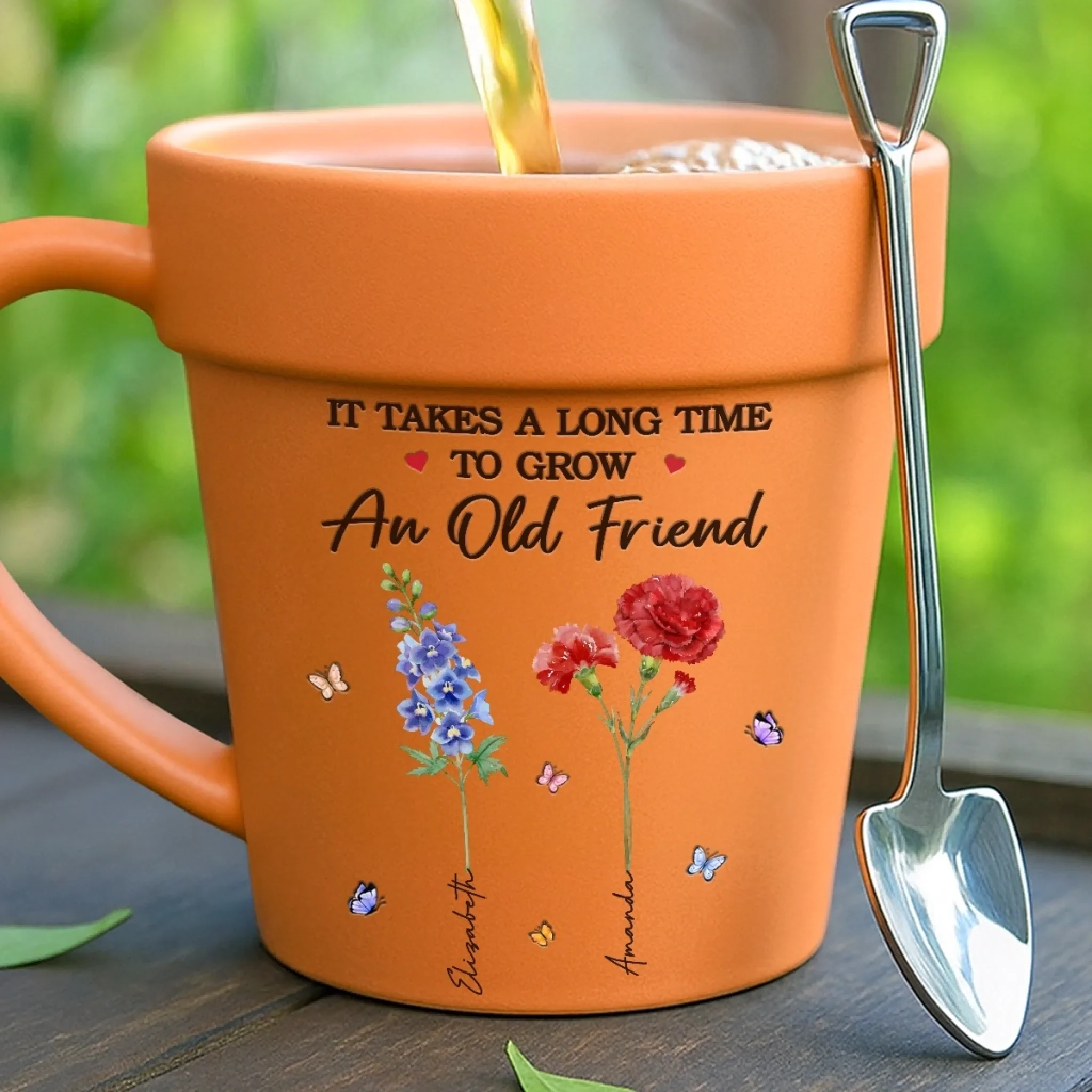 Custom Plant Pot Ceramic Mug - Personalized Best Friend Birthday Gifts For Women - It Takes A Long Time To Grow An Old Friend - Flower Pot Mug