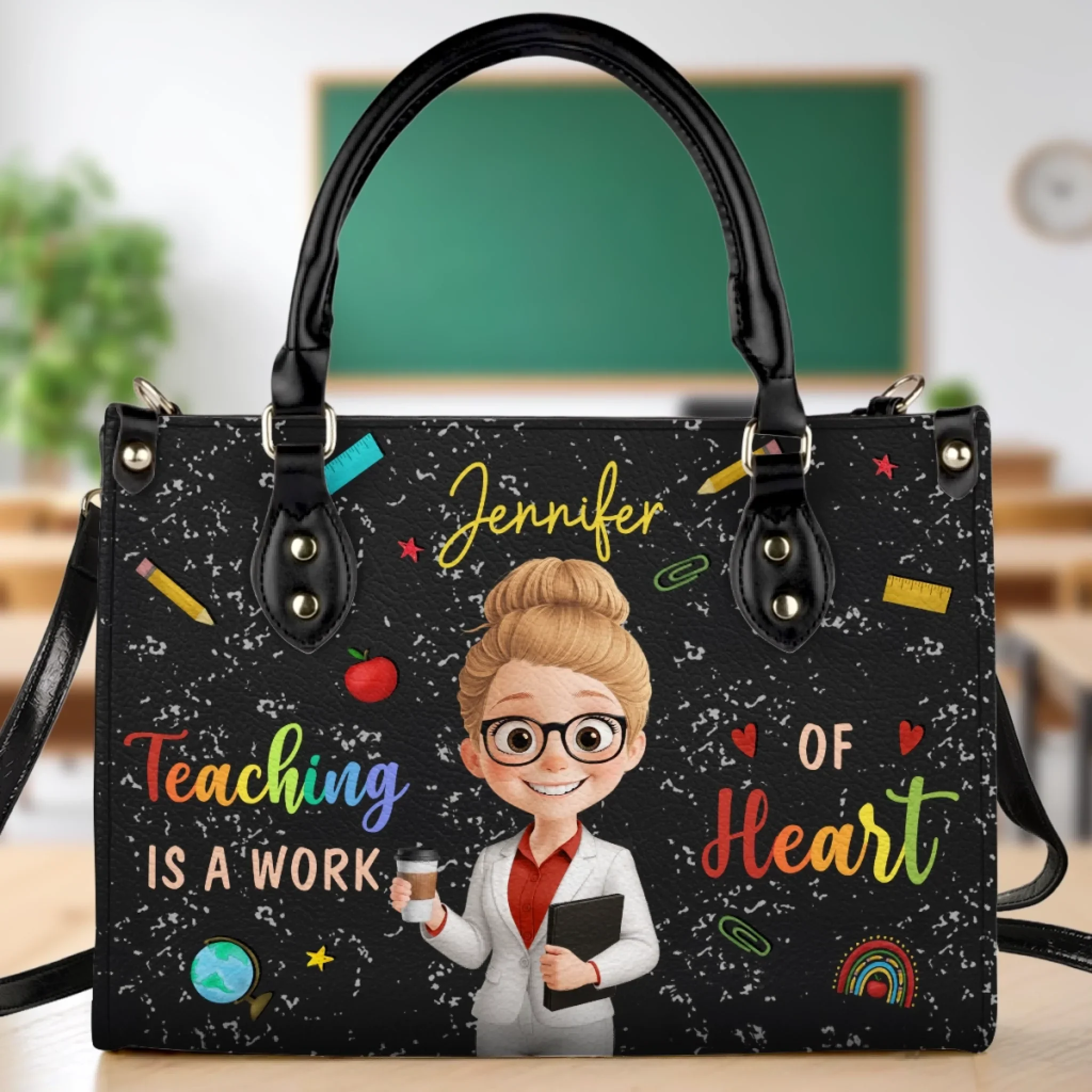 Custom Leather Handbag - Personalized Birthday Gifts For Teachers - Teaching Is A Work Of Heart