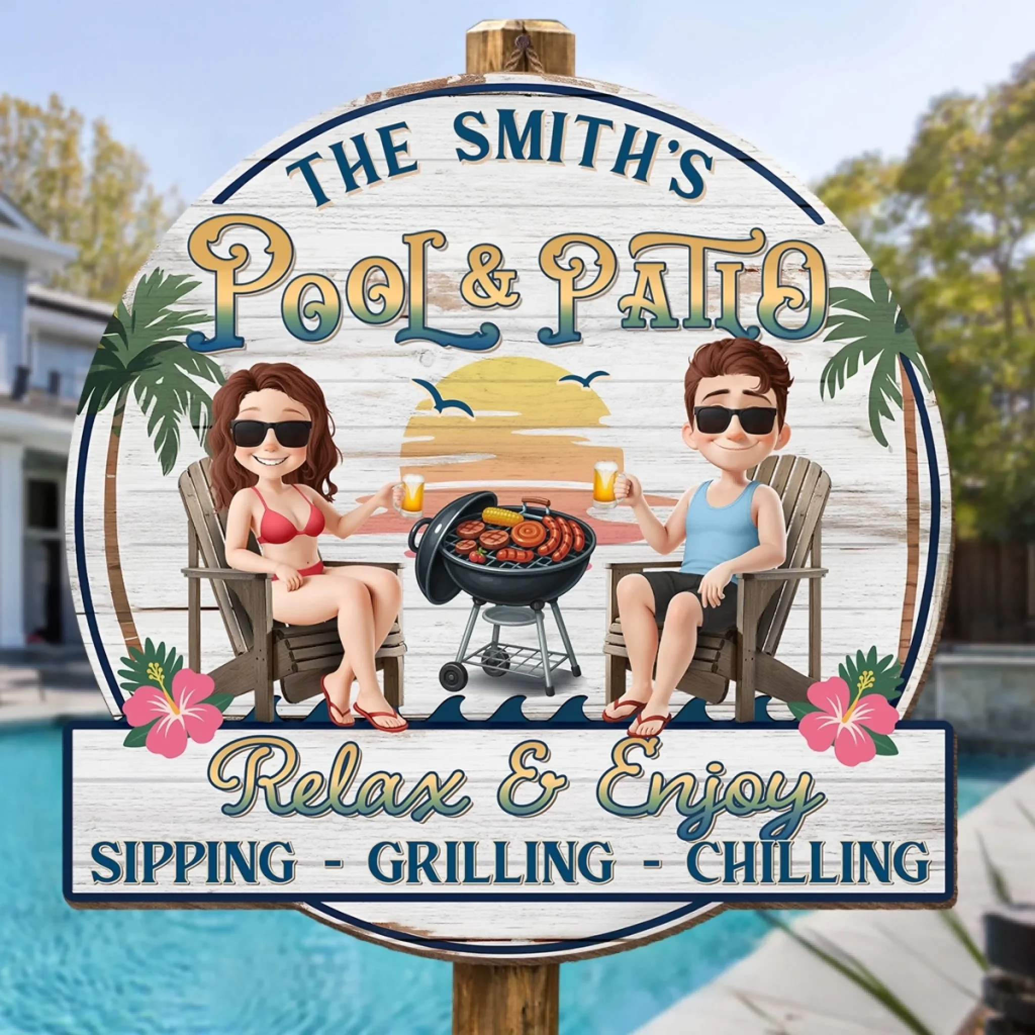 Custom Wood Sign - Personalized Summer Vacation And Travel Gifts For Husband And Wife, Him And Her - Sunshine And Sips