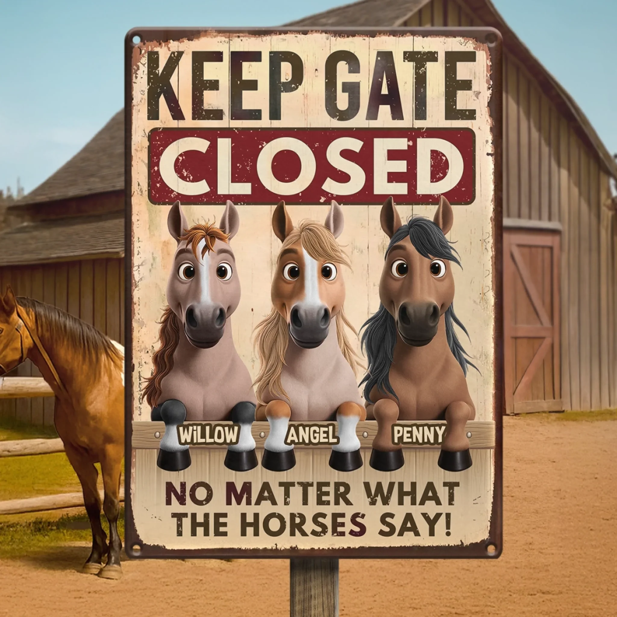 Custom Home Decor Metal Sign - Personalized Birthday Gifts For Men And Women, Horse Lovers - Seriously, Close That Gate