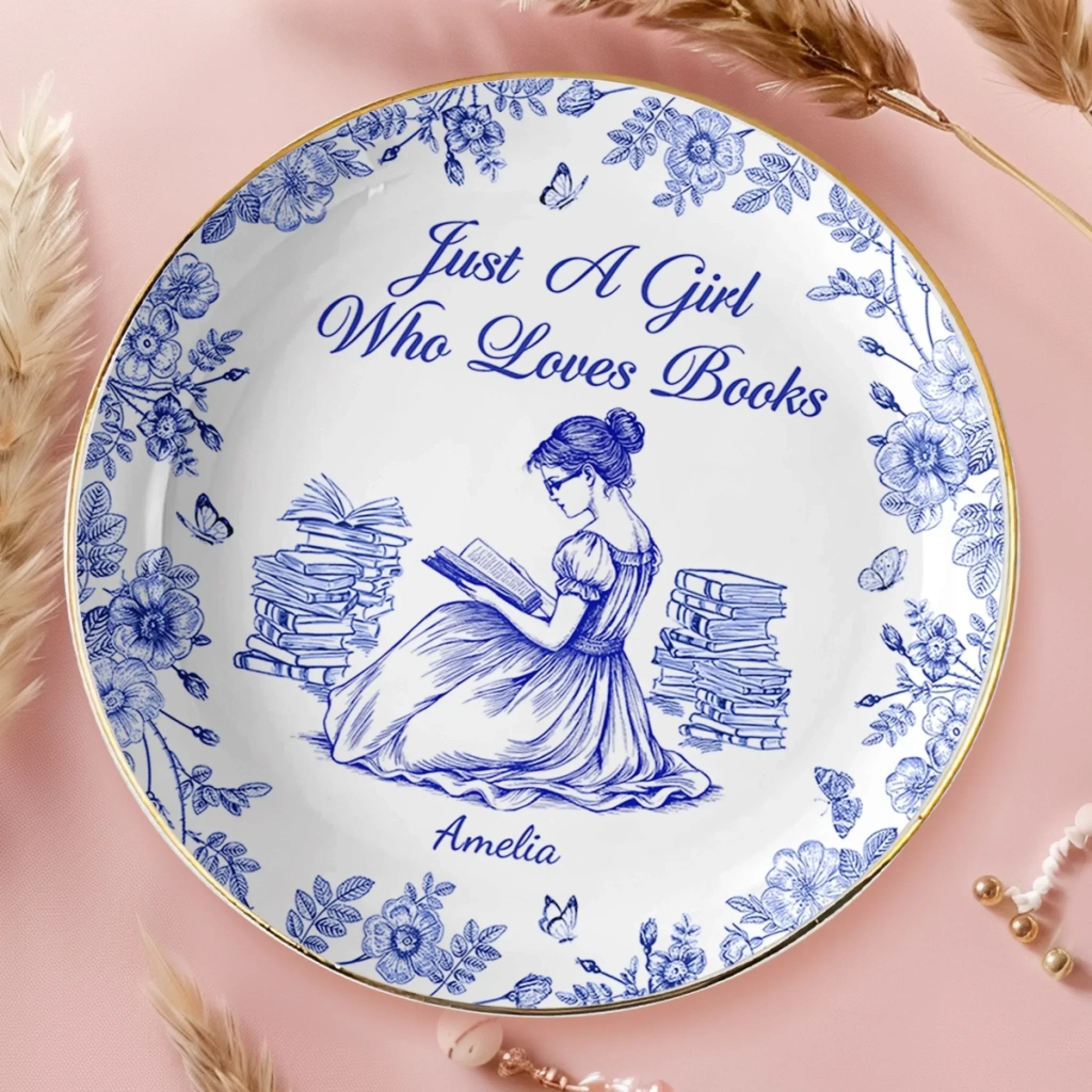 Custom Full-Print Round Jewelry Dish - Personalized Bookish Gifts For Book Lovers, Bookworms, Readers - Bookworm Vibes Only