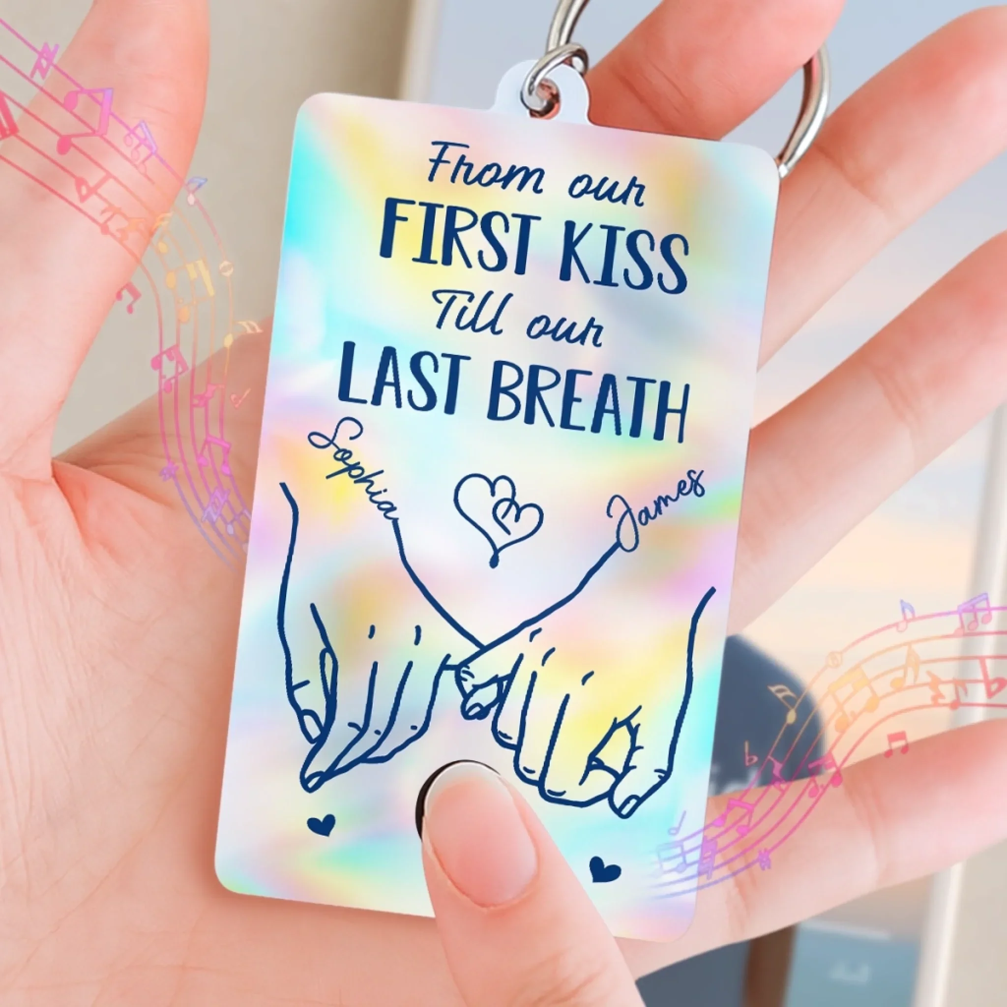 Custom Acrylic Keychain With Voice Recorder - Personalized Anniversary Wedding Gifts For Husband And Wife, Him And Her - Our Love, Our Journey