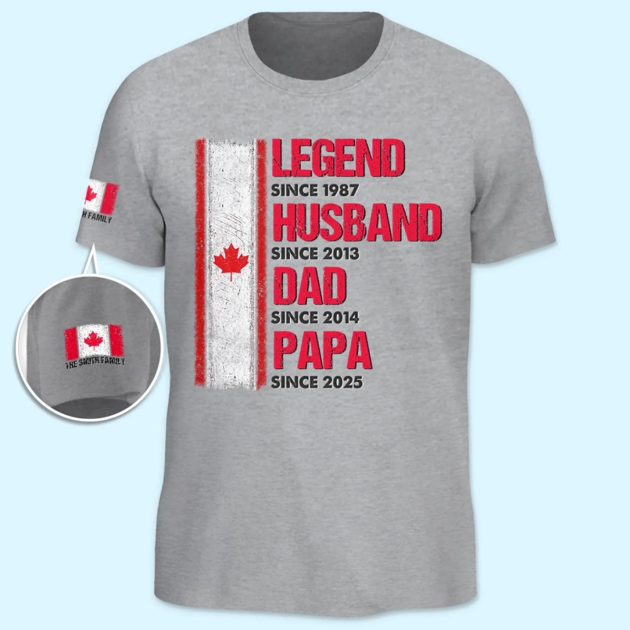 Custom Unisex T-Shirt With Design On Sleeve - Personalized Birthday Gifts For Dad, Grandpa - One Man, Many Roles
