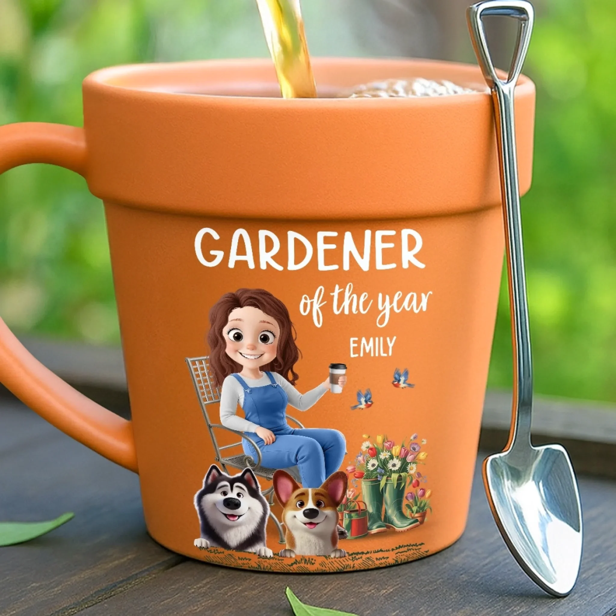 Custom Plant Pot Ceramic Mug - Personalized Garden Gifts For Gardeners, Dog Lovers, Dog Dad And Mom - Green Thumb, Golden Heart - Flower Pot Mug