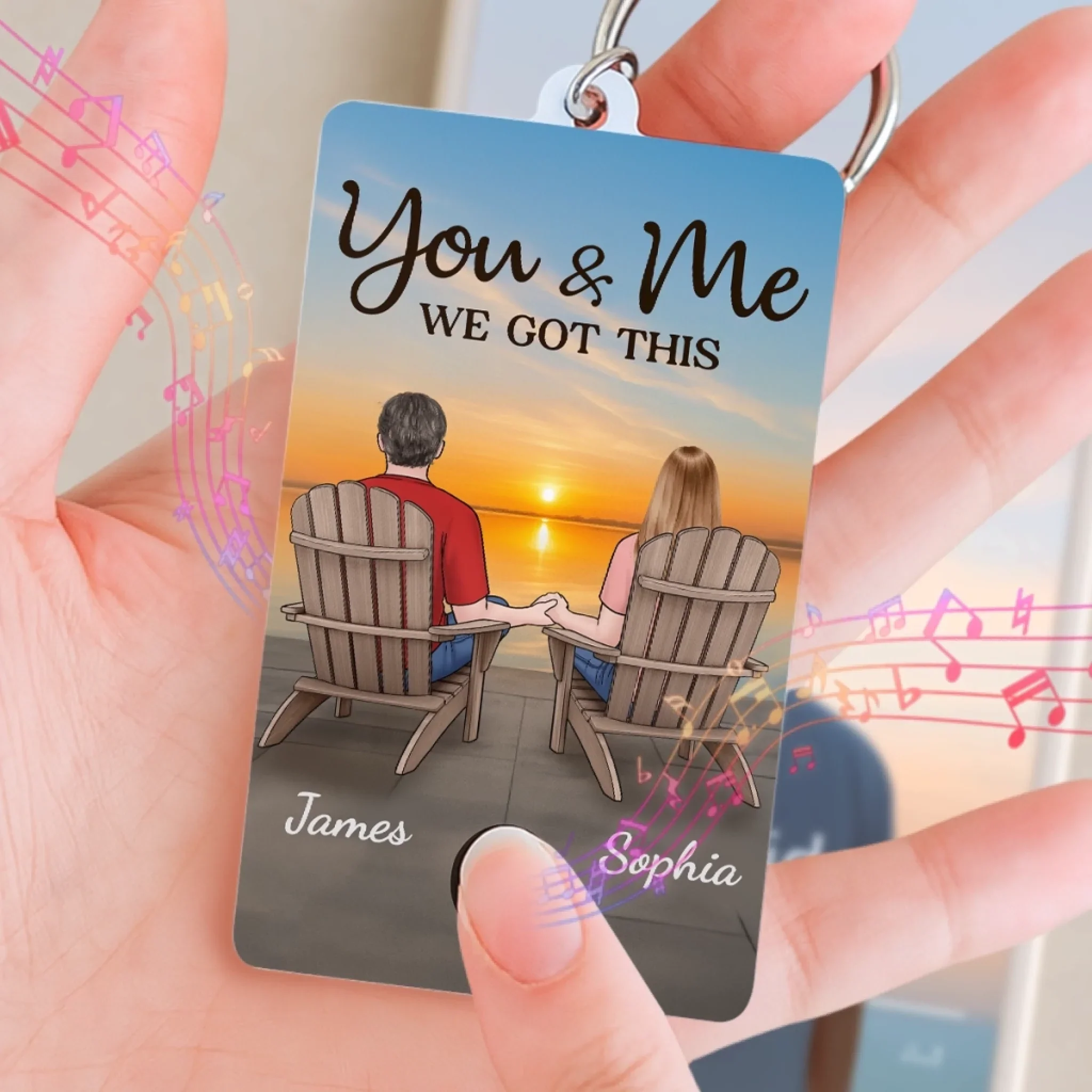 Custom Acrylic Keychain With Voice Recorder - Personalized Anniversary Wedding Gifts For Husband And Wife, Him And Her - Journey Together, Sunset Forever