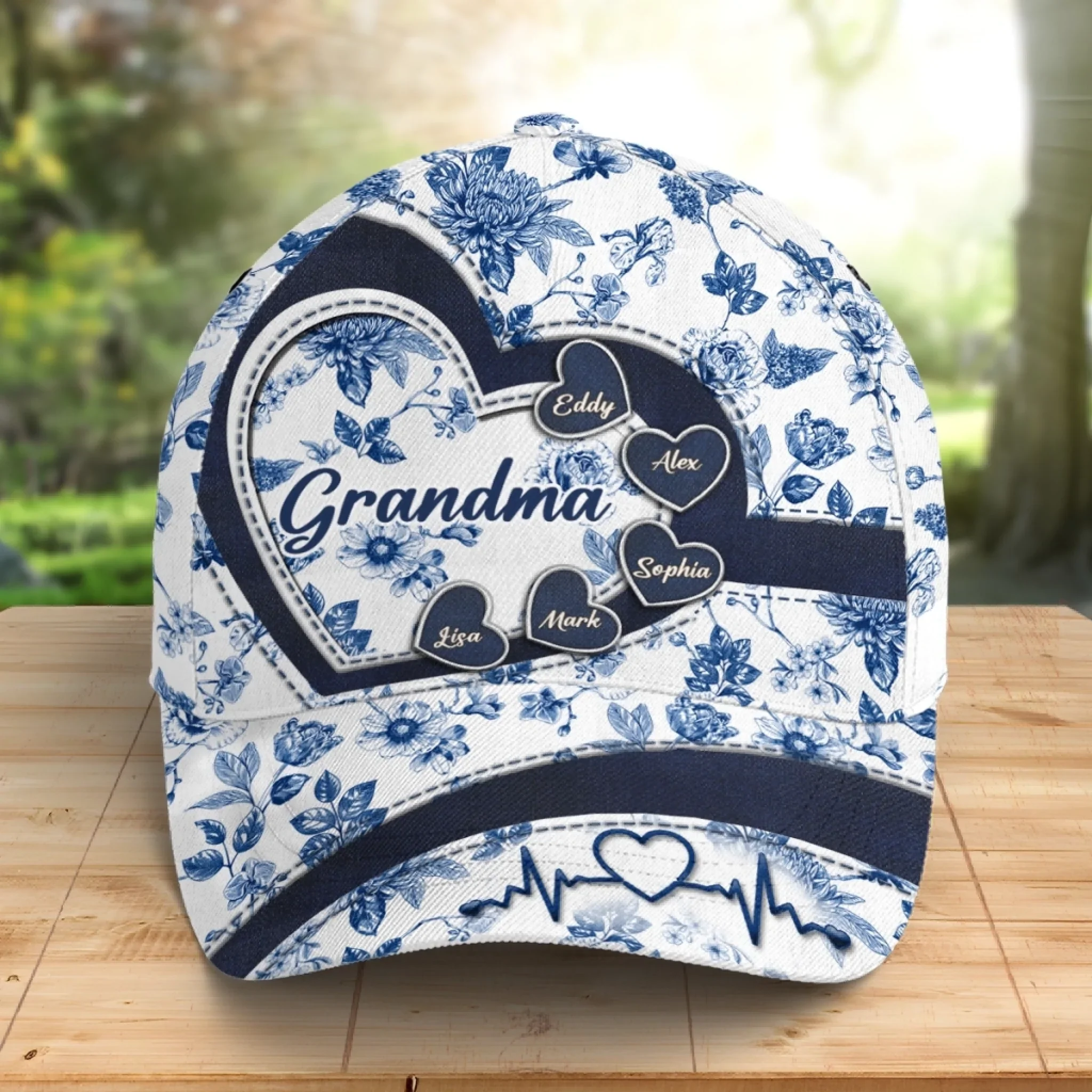 Custom Hat, All Over Print Classic Cap - Personalized Birthday Gifts For Mom, Grandma - Love Blooms With Grandkids