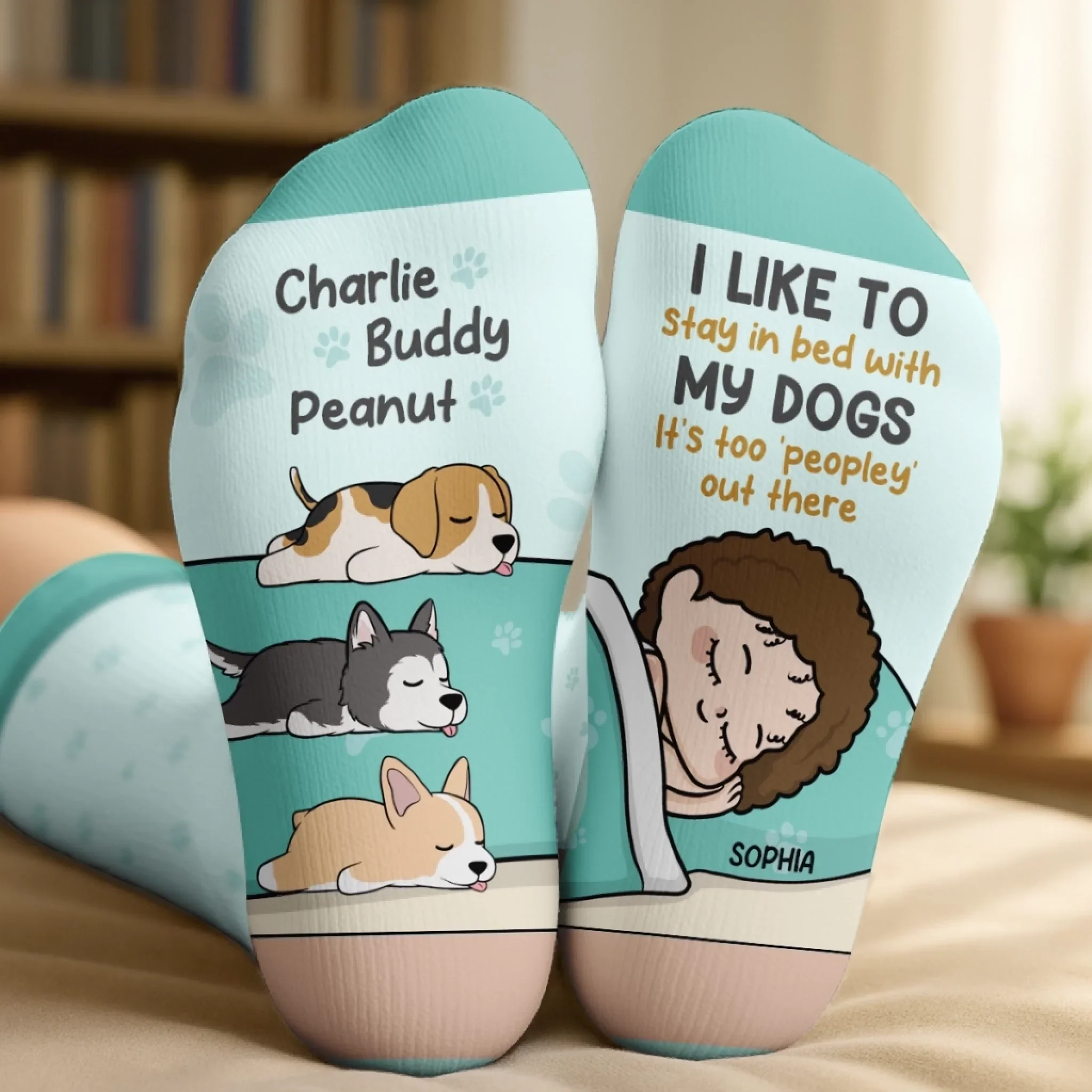 Custom Crew Socks - Personalized Birthday Gifts For Dog Lovers, Dog Dad And Mom - I Like To Stay In Bed With My Dog