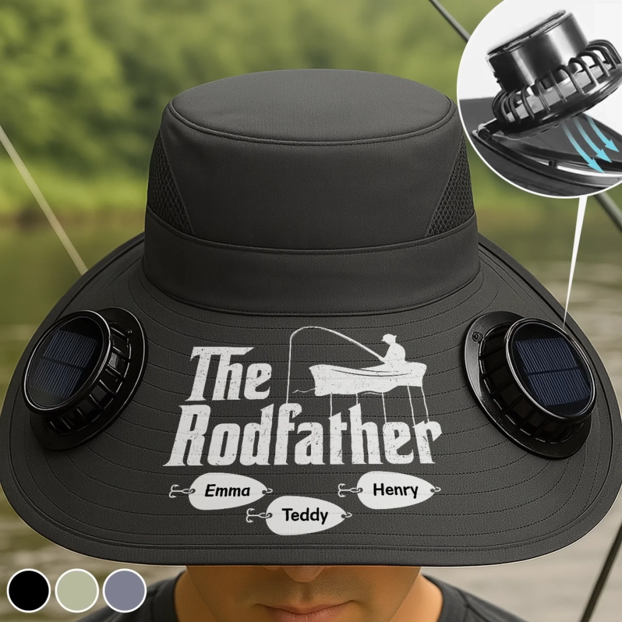 Custom Hat With Fans Solar Power - Personalized Birthday Fishing Gifts For Fisherman, Dad, Grandpa - The Rodfather