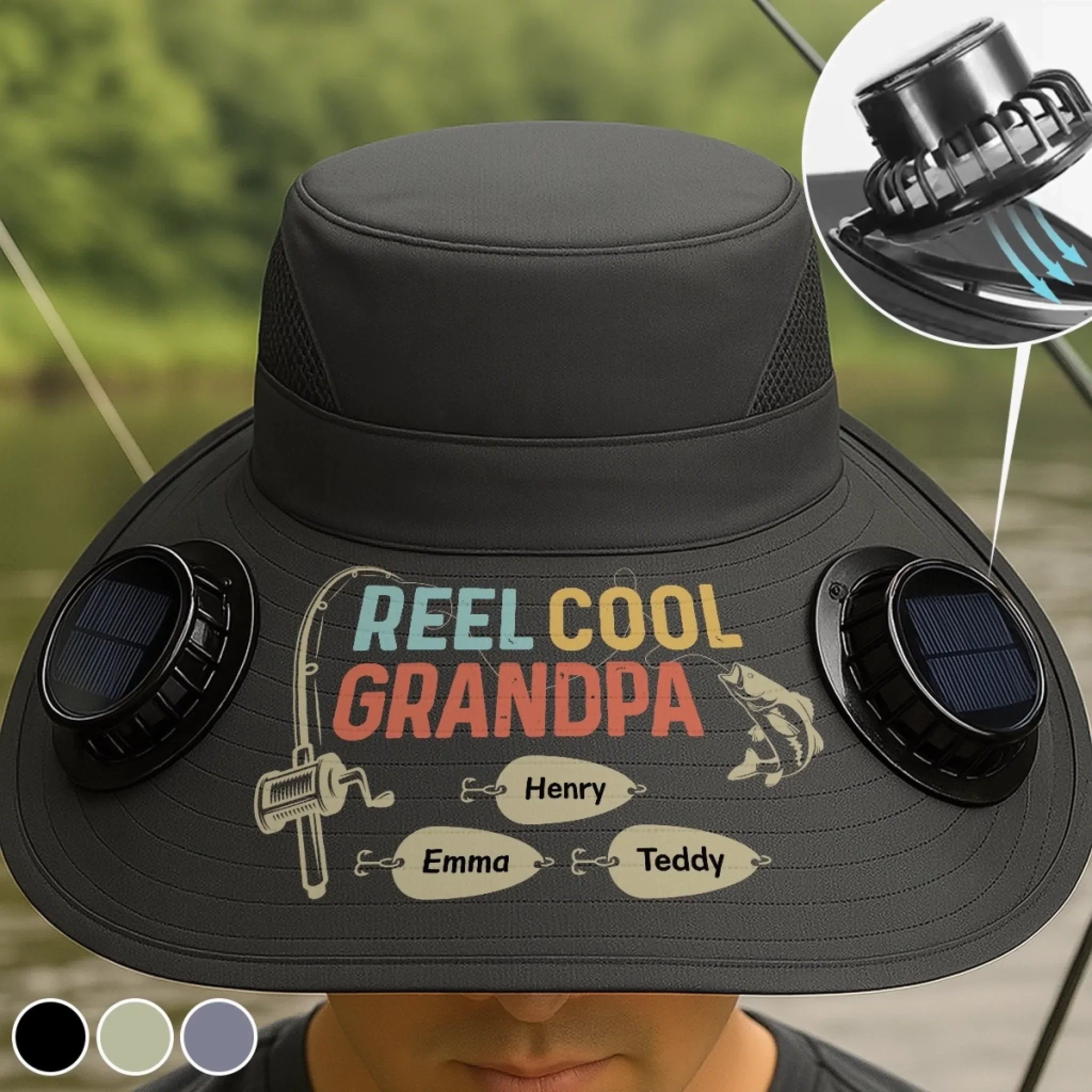 Custom Hat With Fans Solar Power - Personalized Birthday Fishing Gifts For Fisherman, Dad, Grandpa - Reel Cool Grandpa