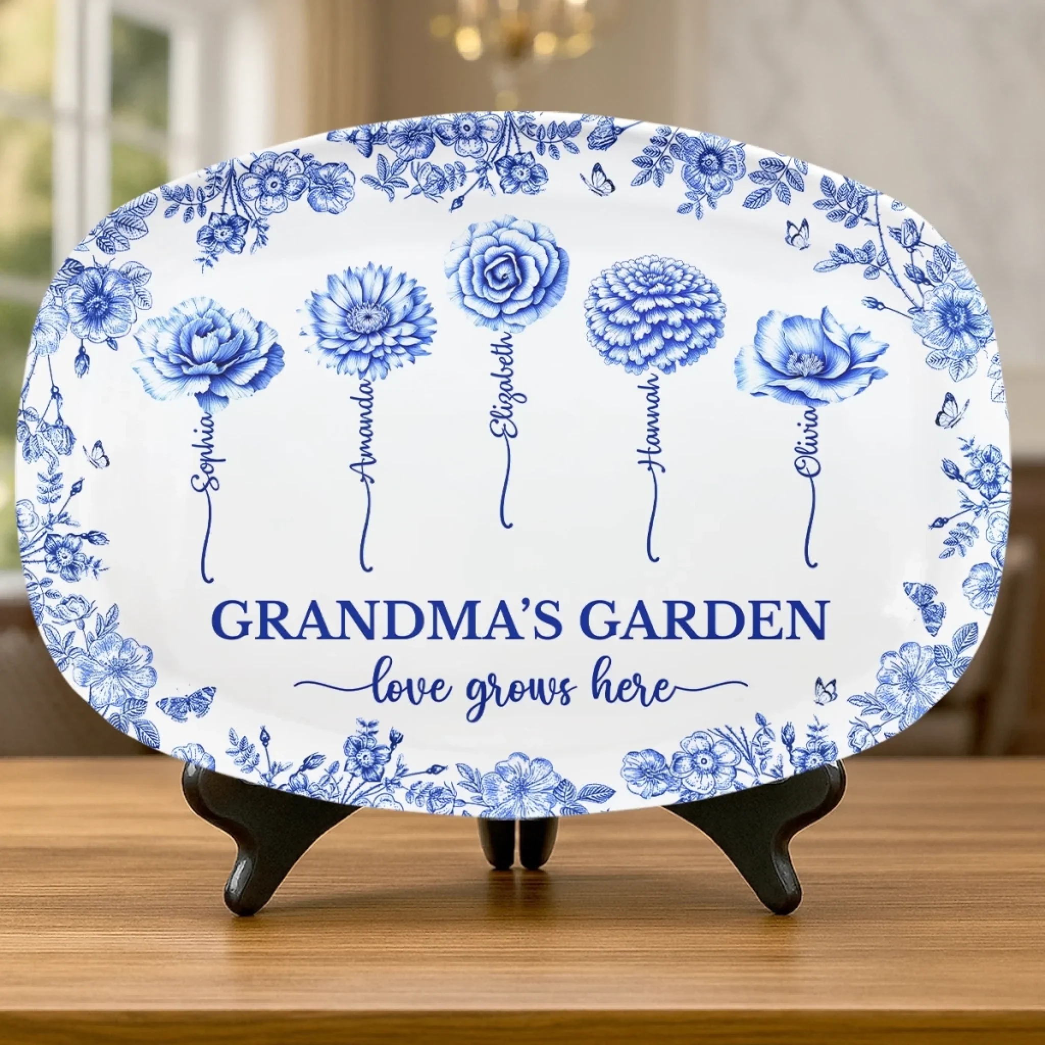 Custom Platter - Personalized Birthday Gifts For Mom, Grandma - Floral Roots Of Everlasting Love