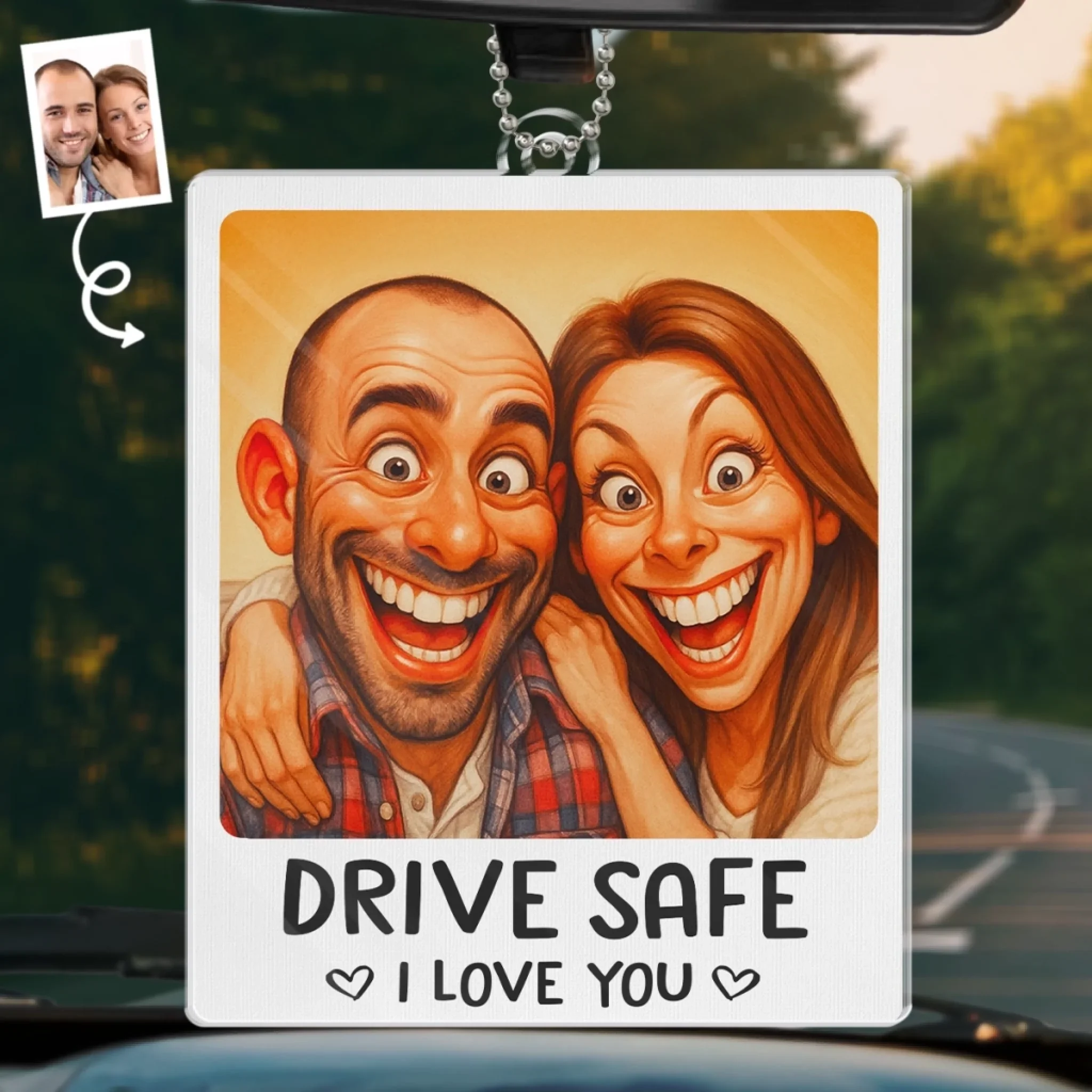 Custom Photo Funny Caricature Acrylic Car Ornament - Personalized Anniversary Wedding Gifts For Husband And Wife, Him And Her - Safe Driver, Happy Lover
