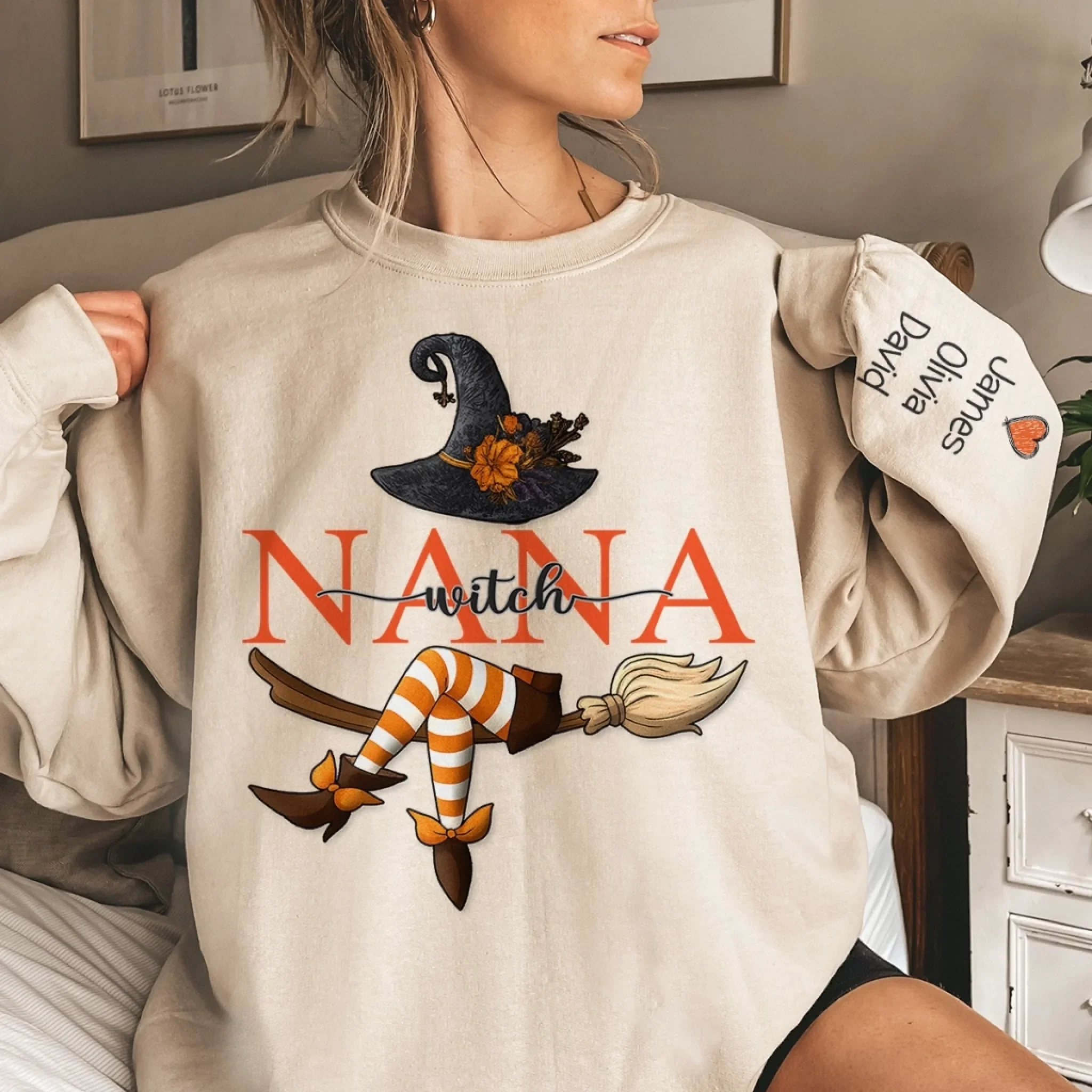 Custom Unisex Sweatshirt, Hoodie With Design On Sleeve - Personalized Halloween Birthday Gifts For Mom, Grandma - Bewitching Fun With Witchy Nana