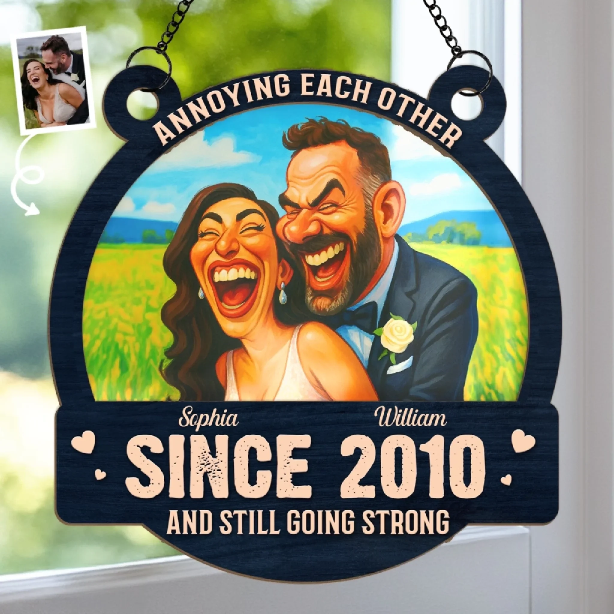 Custom Photo Funny Caricature Window Hanging Suncatcher Ornament - Personalized Anniversary Wedding Gifts For Husband And Wife, Him And Her - Still Going Strong