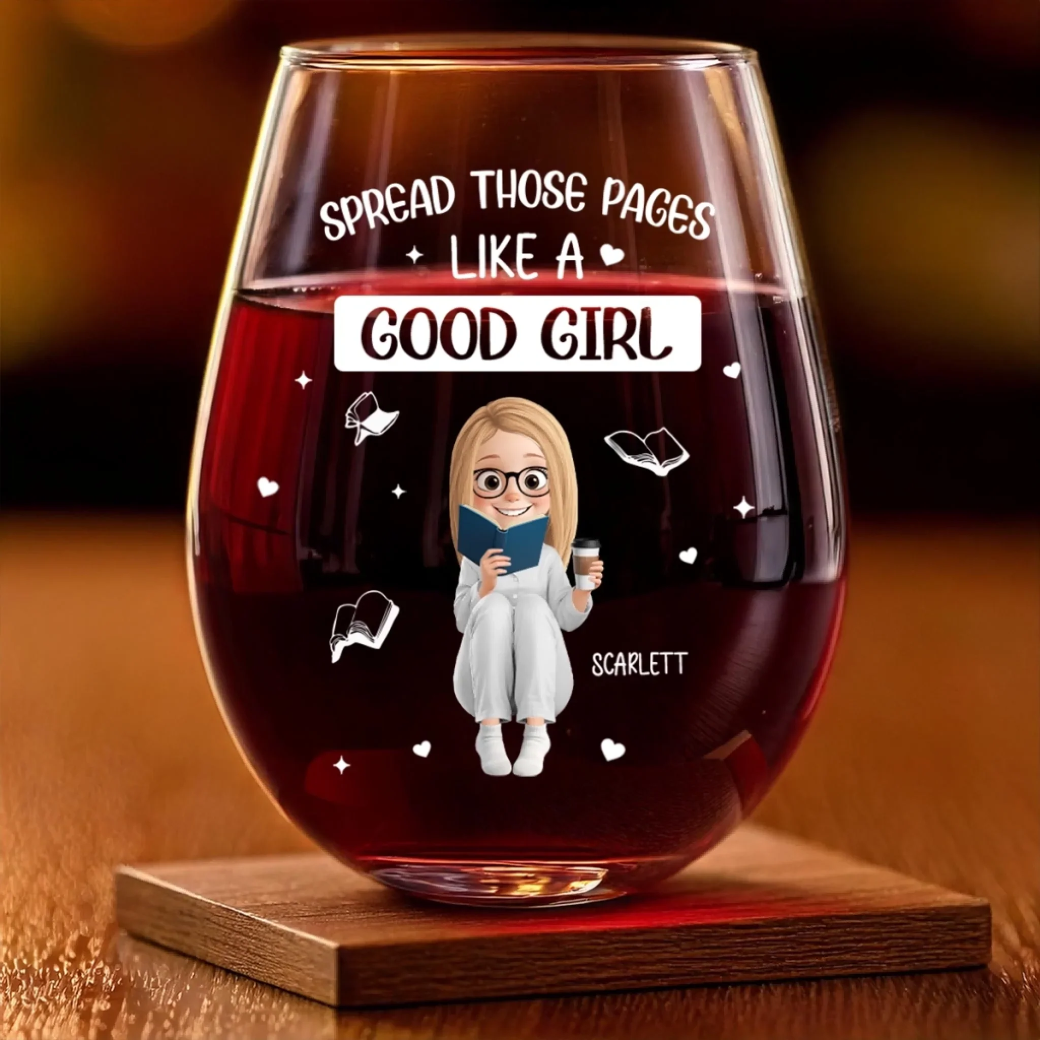Custom Wine Glass - Personalized Bookish Gifts For Book Lovers, Bookworms, Readers - Smart Girls Read Harder