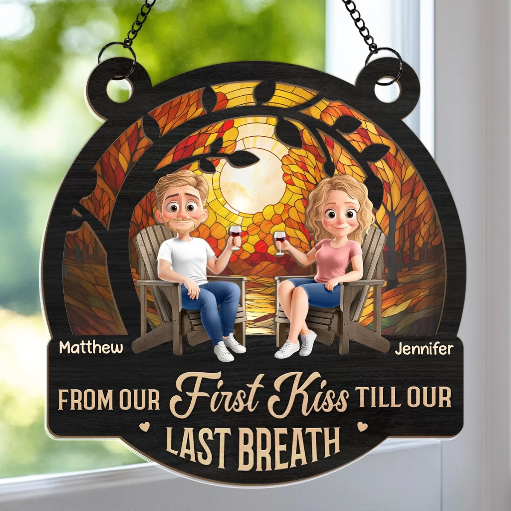 Custom Window Hanging Suncatcher Ornament - Personalized Anniversary Wedding Gifts For Husband And Wife, Him And Her - First Kiss Till Last Breath